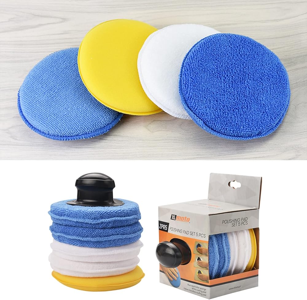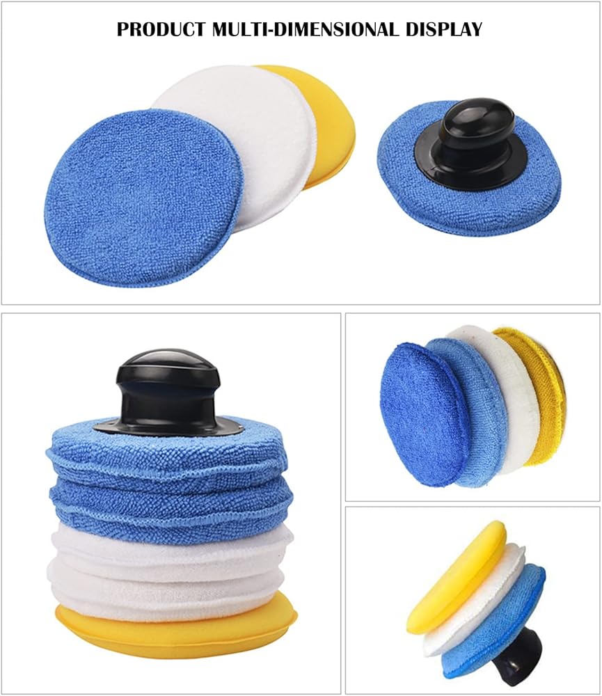 مجموعات وسادات تلميع من الألياف الدقيقة، وسادات لوضع الشمع من الألياف الدقيقة فائقة النعومة مقاس 5 بوصات، إسفنجة إسفنجية لتنظيف السيارة مع مقبض لأي سيارة أو شاحنة أو قارب أو دراجة نارية أو عربة سكن متنقلة