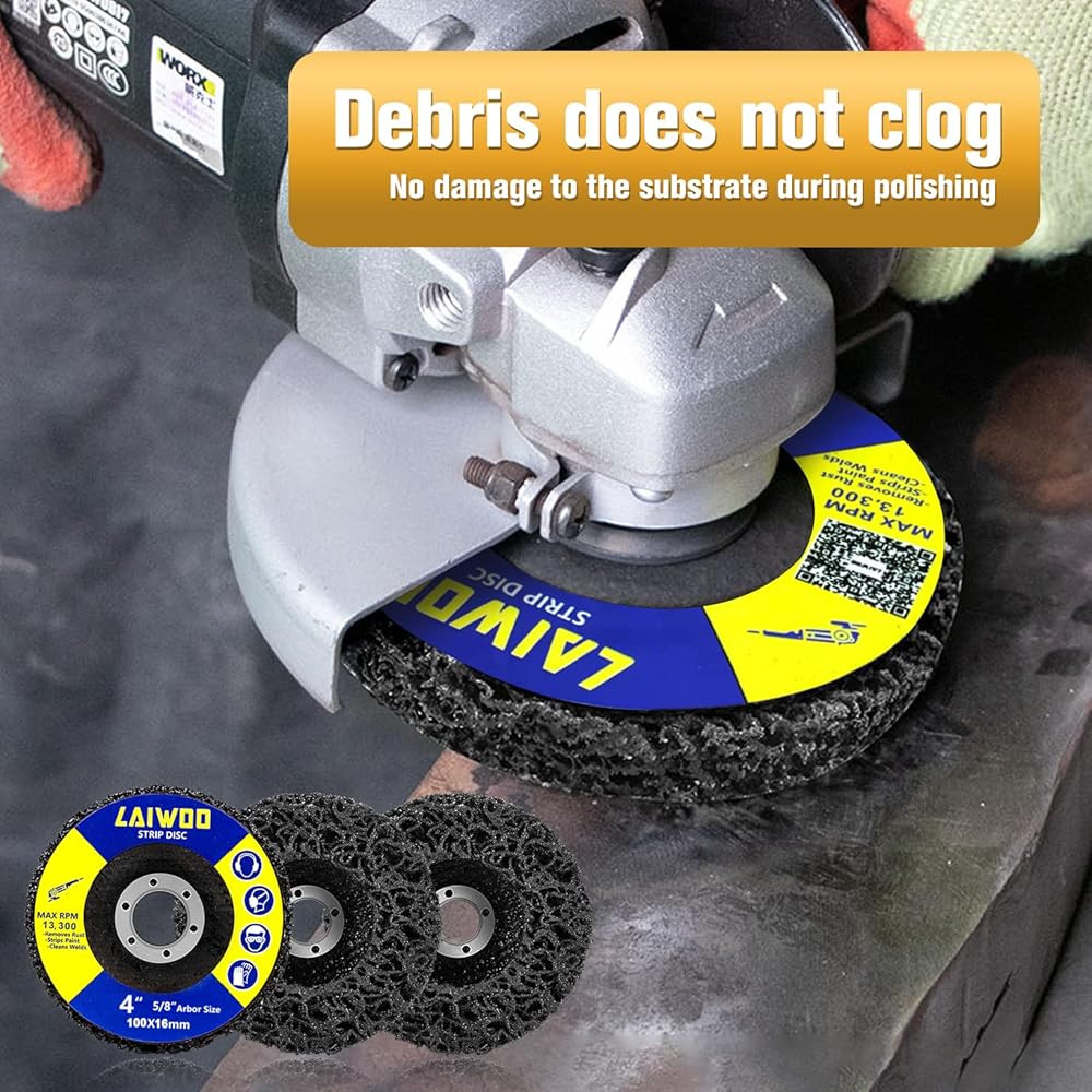 【أبعاد قرص إزالة الطلاء】: قطر قرص الطحن والتلميع 2 في 1 4-1/2 بوصة، وسمك 3/5 بوصة، وقطر الفتحة 7/8 بوصة. أقصى سرعة دوران هي 11000 دورة في الدقيقة، وأعلى سرعة هي 80. حجم الحبوب الكاشطة هو 46 # كربيد السيليكون الأسود.