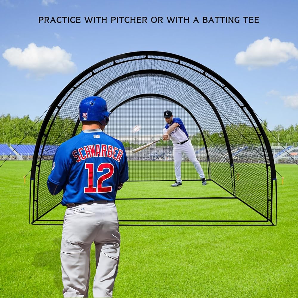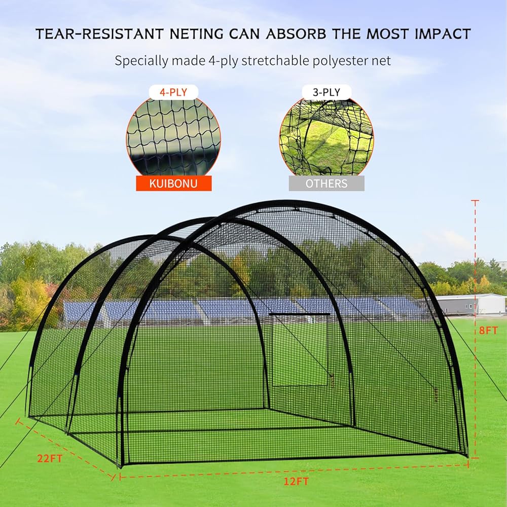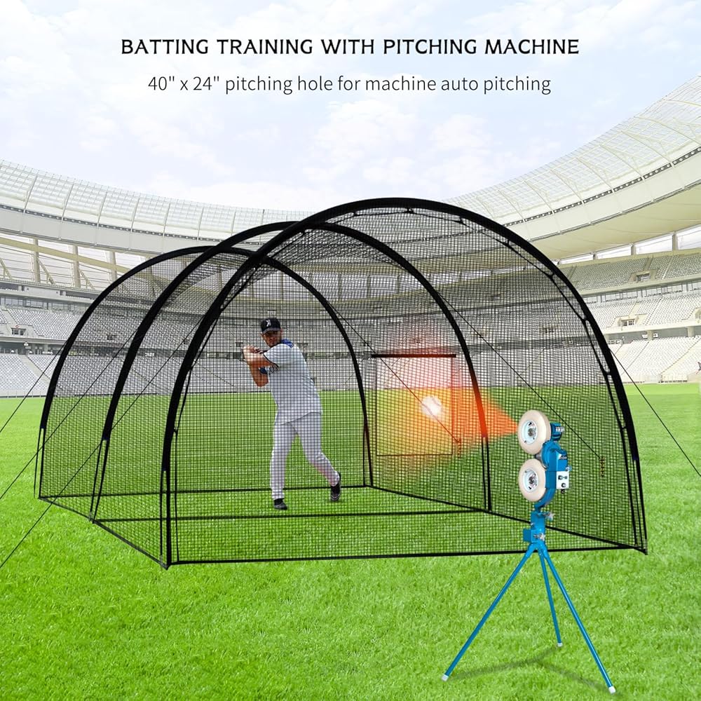 • ⚾️مثالية للرمي الآلي واليدوي: تحتوي شبكة قفص البيسبول مقاس 22x12x8 قدم على مساحة كبيرة لمحاكاة سيناريوهات الضرب للمنافسة الحقيقية. باب فريد قابل للفصل مزود بفتحة رمي مقاس 20 × 40 بوصة للتدرب على آلة الرمي أو الإبريق.