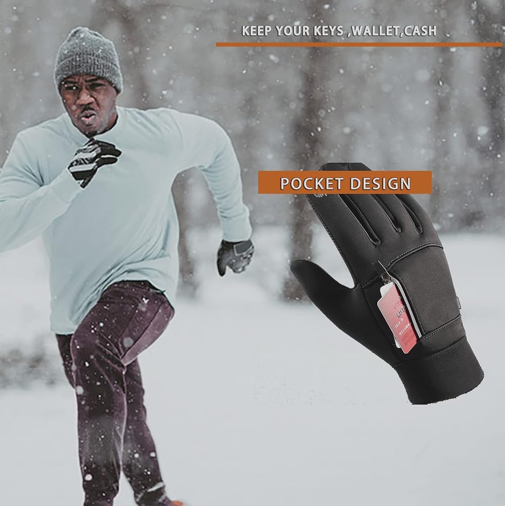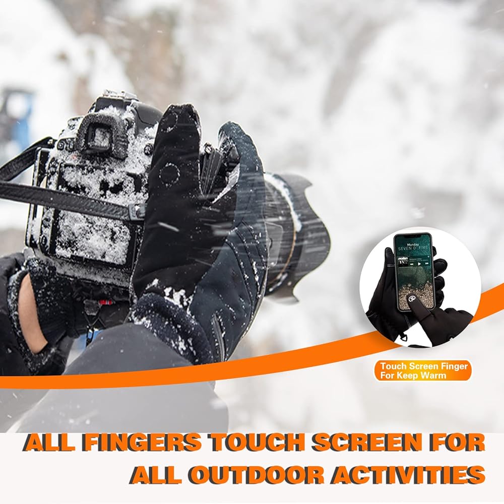 • تصميم شاشة تعمل باللمس وقفازات بدون أصابع - قفازات الشتاء للرجال مطلية بمادة موصلة على إصبع السبابة، ويمكنك تشغيل هاتفك وipad والساعة الذكية واللوحة الأخرى في أي مكان وفي أي وقت دون خلع القفازات الدافئة