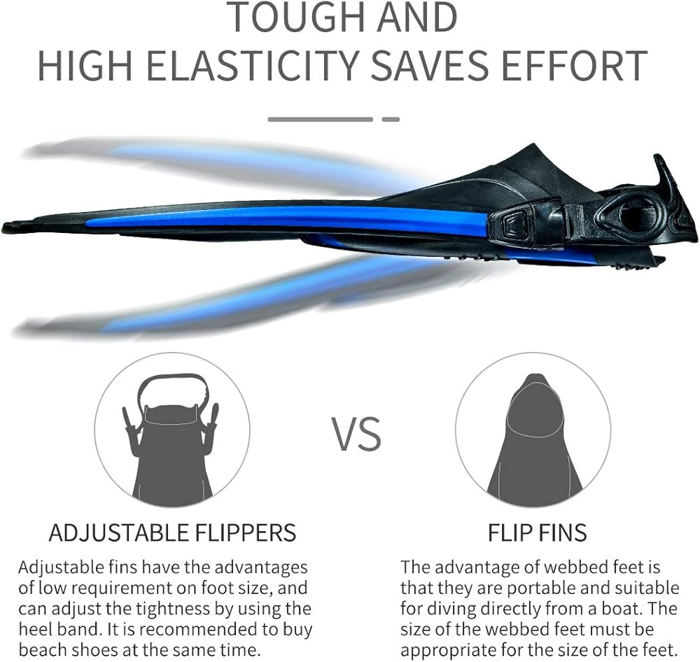 • 【تصميم احترافي بكعب مفتوح قابل للتعديل】تتميز زعانف الغوص القابلة للتعديل بمزايا المتطلبات المنخفضة لحجم القدم، ويمكن ضبط إحكامها باستخدام شريط الكعب. وهذا يعني أن كل زعنفة غطس يمكن أن تستوعب مقاسات أكبر، ويمكنك بسهولة العثور على المقاس الذي يناسبك، ويمكنك مشاركتها مع الأصدقاء والعائلة.