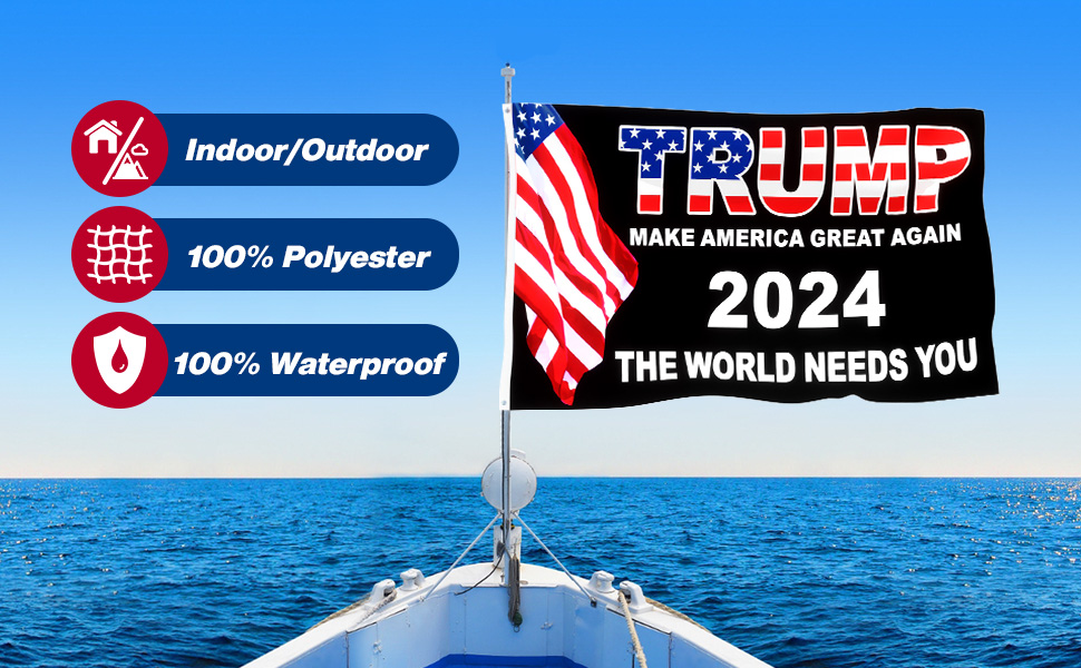 🥇جودة عالية: 100% بوليستر طباعة 100D، ألوان زاهية، طبقة واحدة على الوجهين (مرآة) مطبوعة أعلام ترامب أكثر حيوية. مقاوم للبهتان، ومقاوم للأشعة فوق البنفسجية، ومقاوم للماء. الحواف مزدوجة التماس. حلقات نحاسية قوية. (طبقة واحدة / مرآة مطبوعة على الوجهين / سارية العلم غير متضمنة)