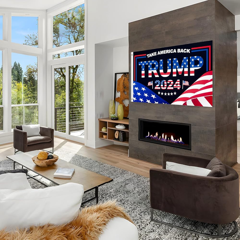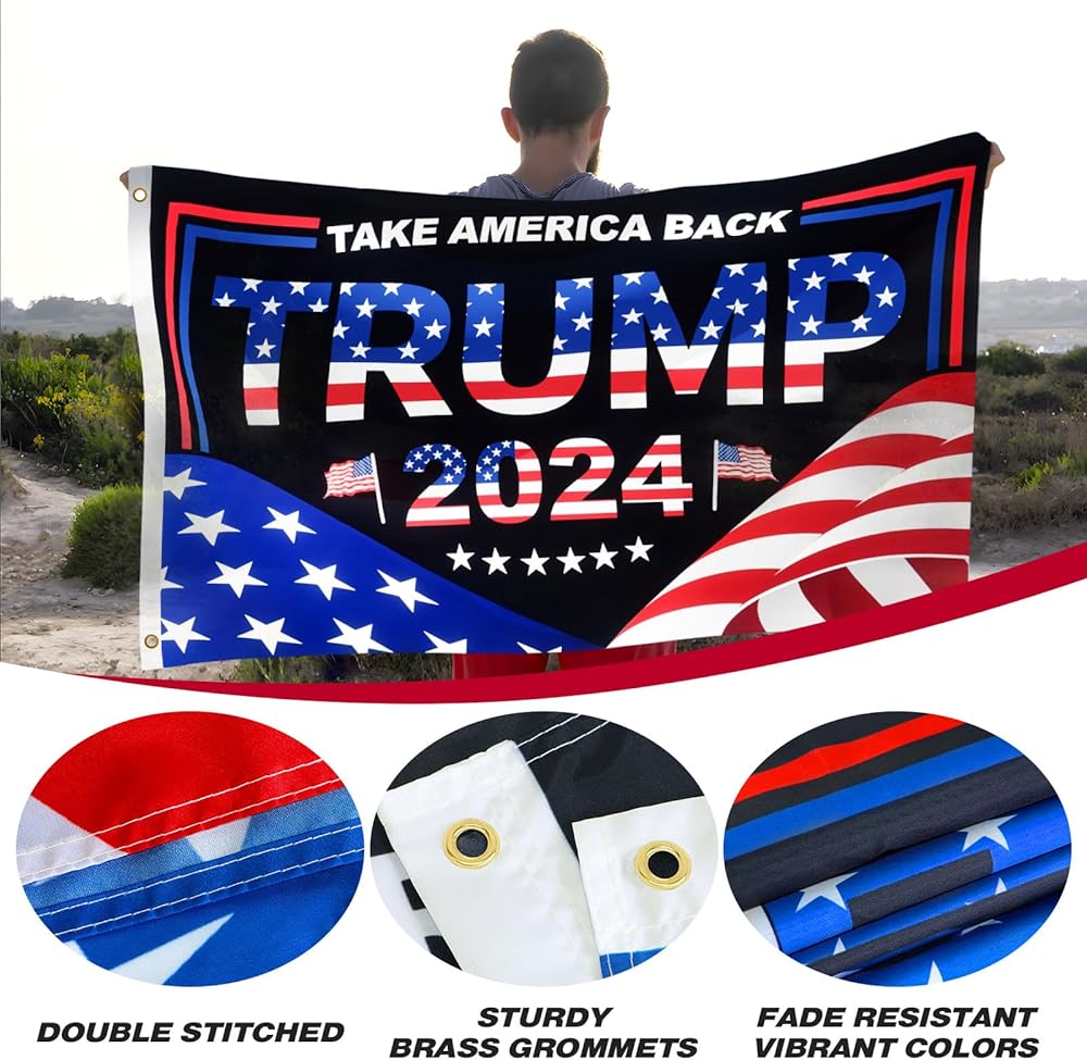 علم ترامب 2024 مقاس 3×5 قدم، علم الرئيس ترامب يأخذ أمريكا إلى الخلف، داخلي وخارجي، طبقة واحدة بألوان وطنية زاهية، تصميم مقاوم للأشعة فوق البنفسجية والبهتان، حلقتين نحاسيتين