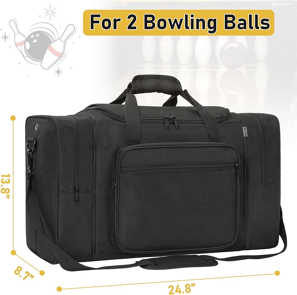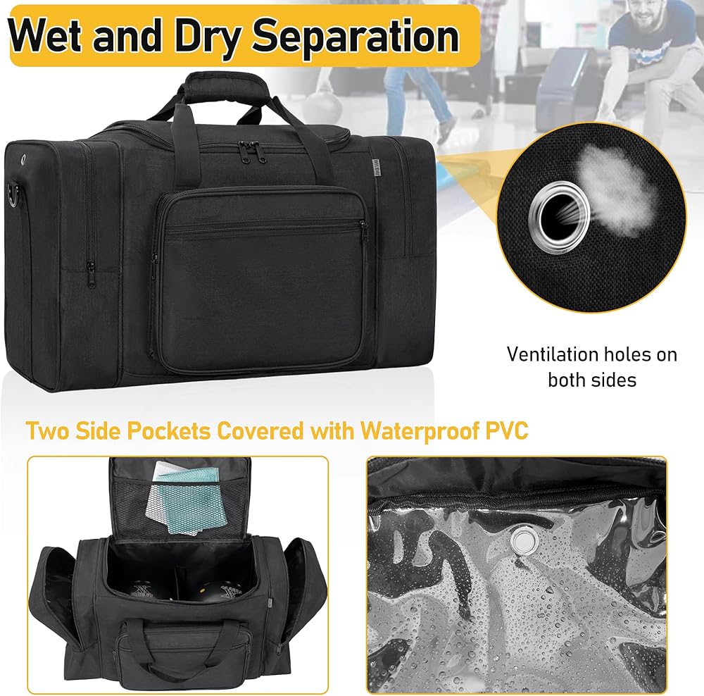 • 【Wet and Dry Separation】The two side pockets of the Bowling Ball Bag are covered with transparent waterproof PVC. The bags on both sides can hold wet clothes and shoes and are equipped with ventilation holes. Dimensions:16.9 x 8.7 x 13.8inches