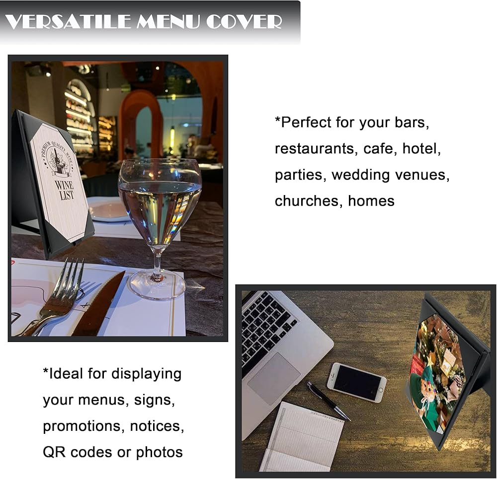 حامل عرض صغير أنيق: زوايا على شكل ألبوم لحمل أو استبدال الأوراق المختلفة بقوة وسهولة، وهو مثالي لعرض القوائم أو اللافتات أو العروض الترويجية أو الإشعارات أو رموز QR أو الصور