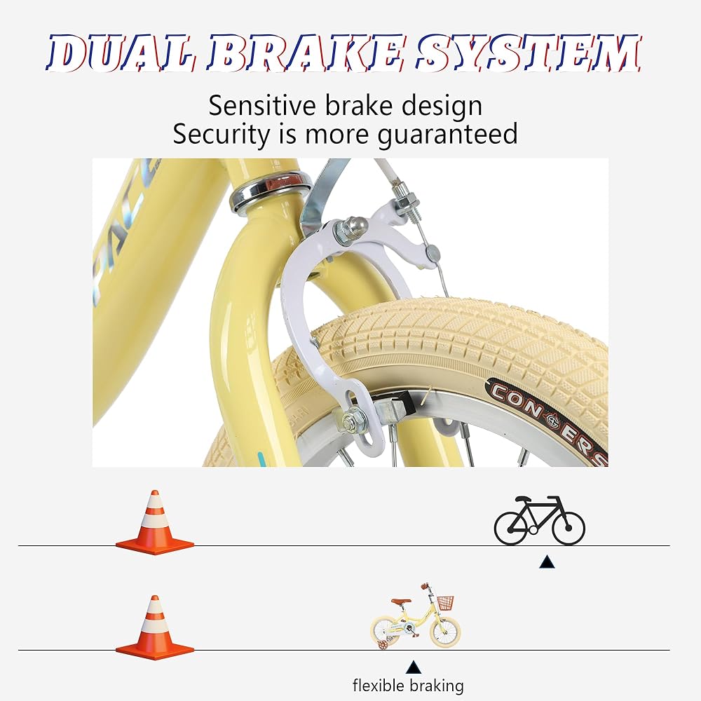 آمنة ومتينة - الدراجة مزودة بفرامل خلفية (عكس الدواسات للتوقف) وفرامل أمامية (فرامل يدوية مثل دراجات البالغين) لركوب آمن. حارس سلسلة مغلق، يمنع أطفالك من التعرض للأذى.