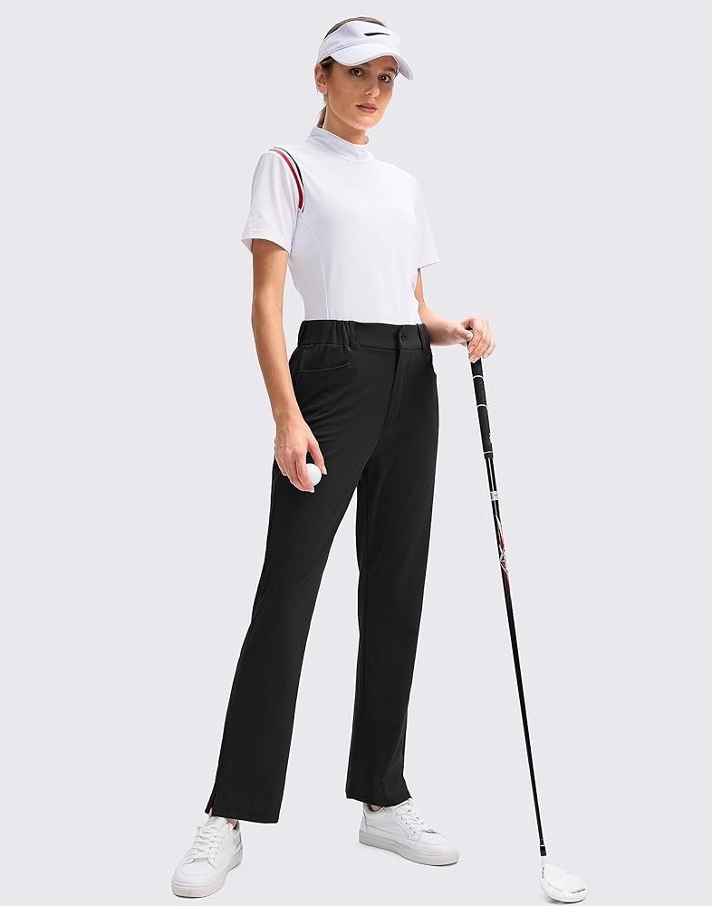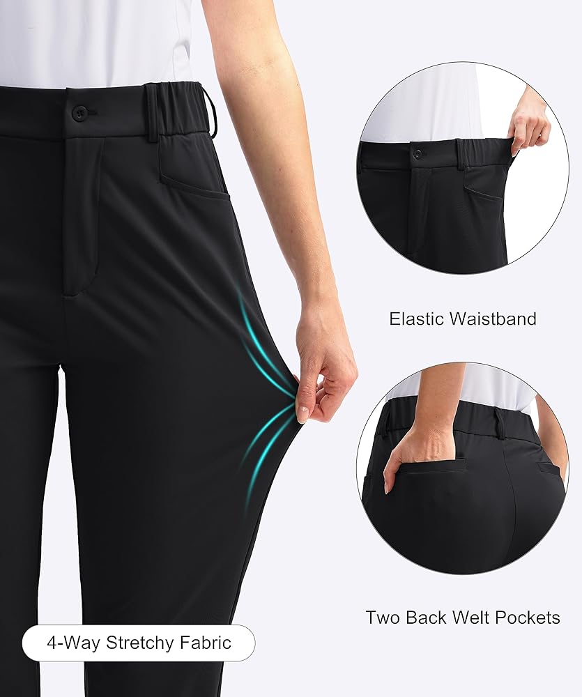 نسيج ناعم ومطاط: سراويل الجولف النسائية مصنوعة من نسيج ناعم وسريع الجفاف ومطاط في 4 اتجاهات يمتص الرطوبة بعيدًا عن بشرتك ويوفر المرونة للحركة النشطة أثناء أرجوحة الجولف.
