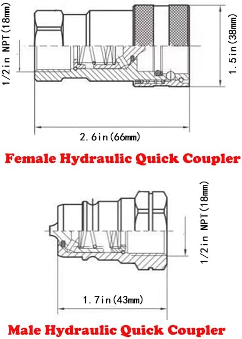 【Size】:The Hydraulic Quick Connect Tractor Couplers is 1/2 inch NPT threaded, making the coupler easy to connect with a simple push;