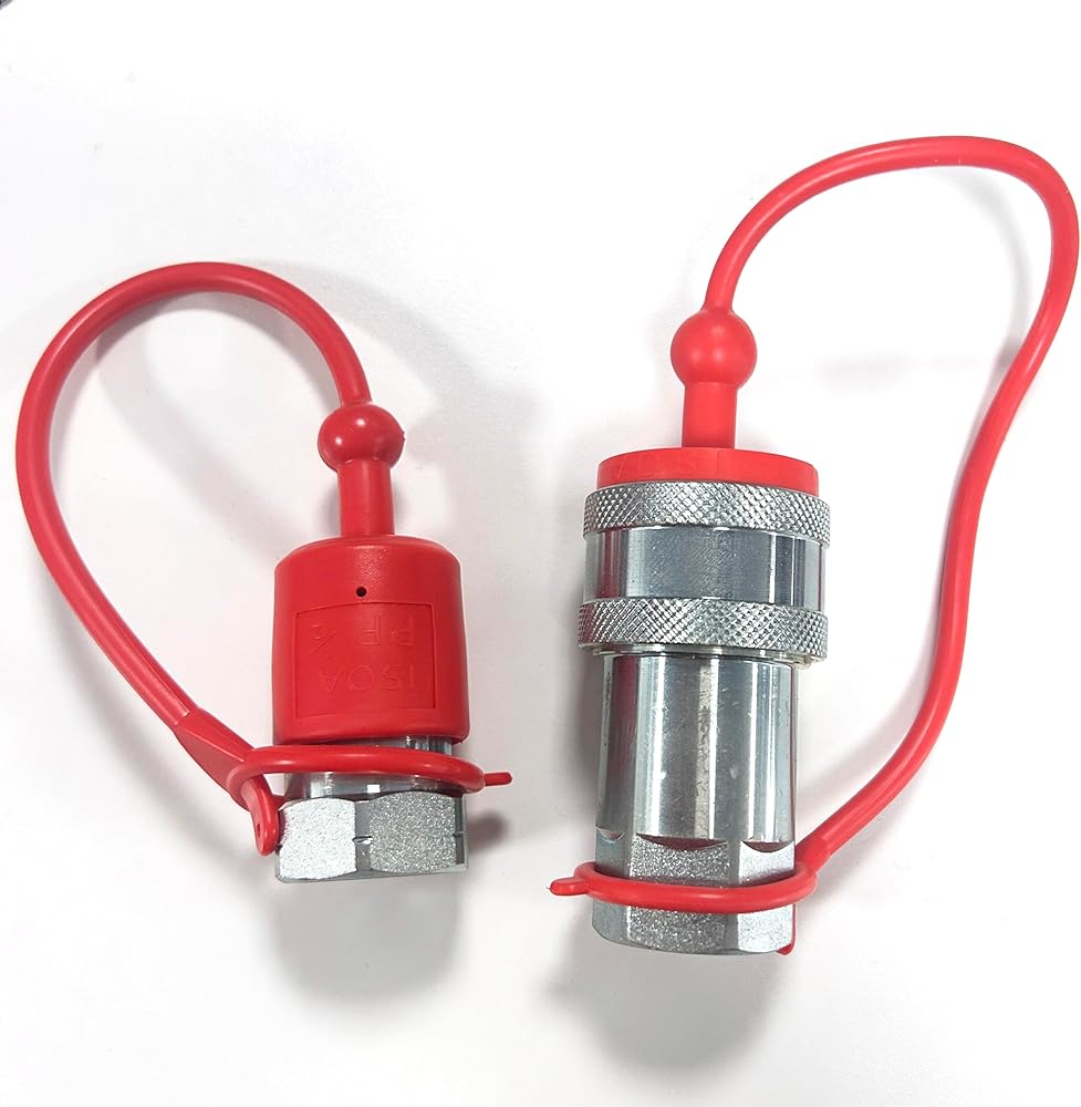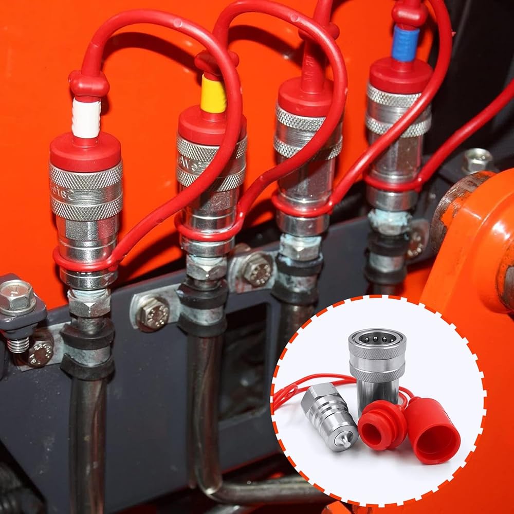 1/2" 304SS Hydraulic Quick Connect Tractor Couplers with Red Dust Caps, ISO 5675