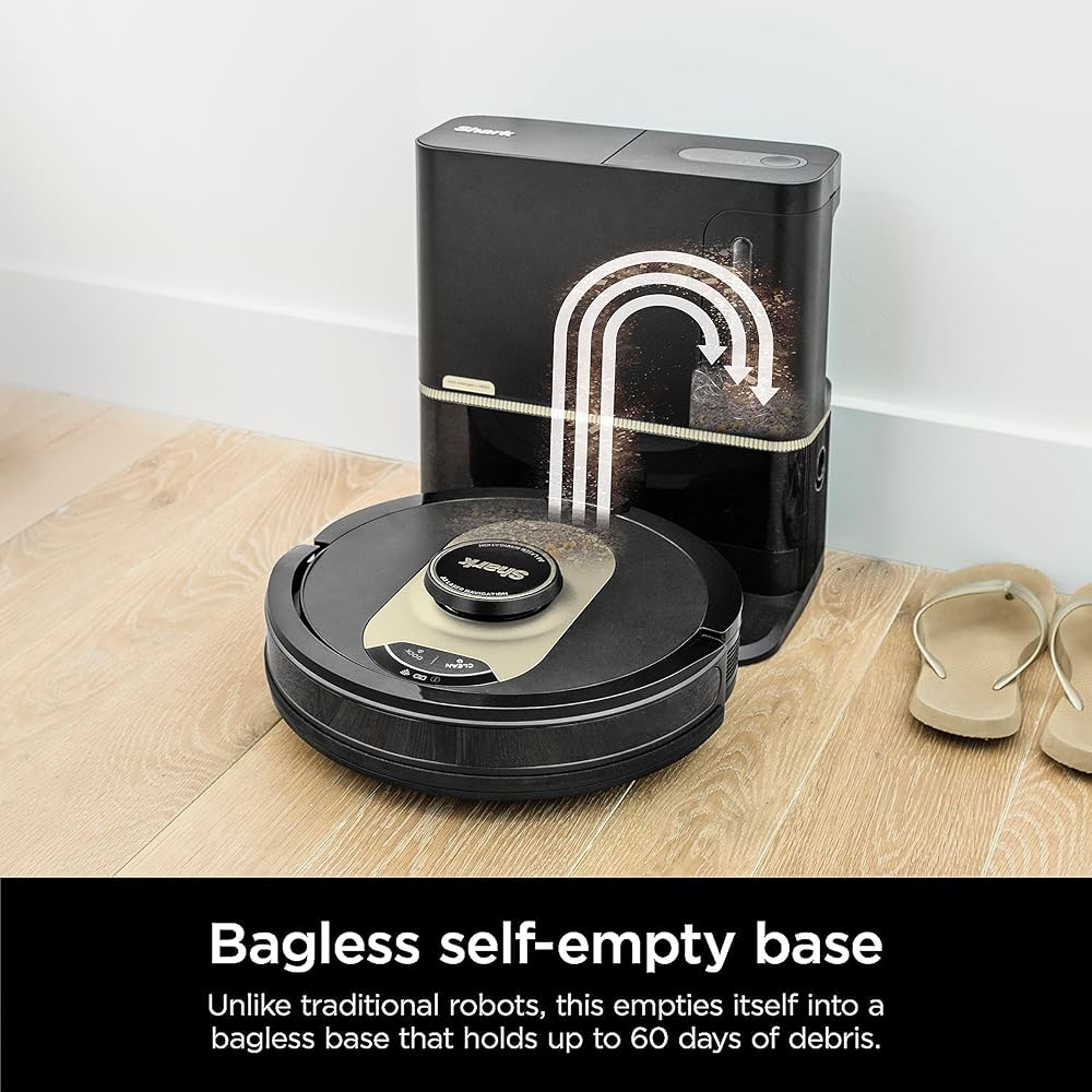 The Shark AI Robot Self-Empty combines the latest innovations for a whole-home clean you can't get from any other robot. Features include: Shark's patented suction power; AI Laser Navigation for precision cleaning and object avoidance; UltraClean Mode for targeted deep cleaning; and a HEPA 60-day-capacity base that'll keep your home's air free of dust and allergens with every clean.