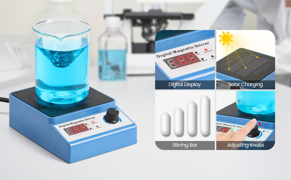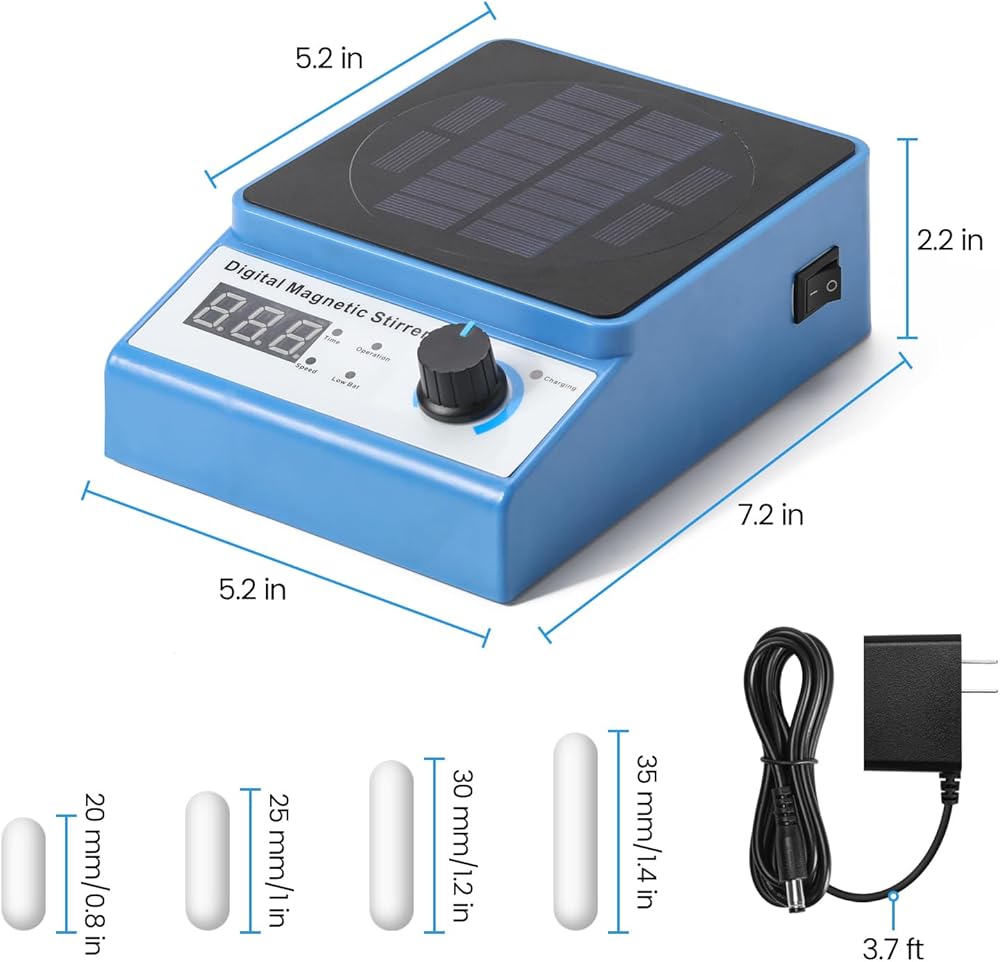 صغير الحجم وقابل للحمل: يأتي هذا الخلاط مع 4 أحجام من أدوات التحريك المغناطيسية، وتصميم أنيق ومحمول. مثالية للمناطق الضيقة، ويمكن حملها بسهولة لتلبية احتياجات الخلط أثناء التنقل. سواء كنت في مختبر ضيق أو مطبخ منزلي، فإن شكله المدمج يضمن أنه لن يهيمن على مساحة العمل الخاصة بك