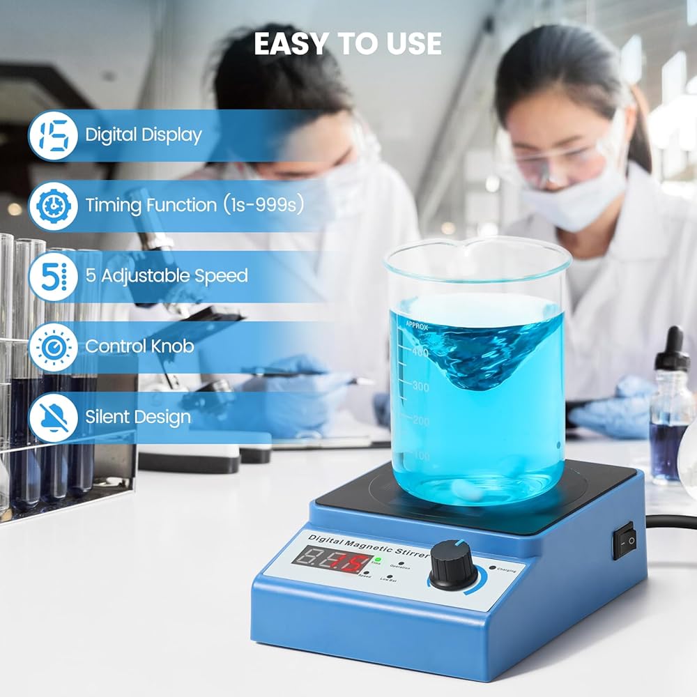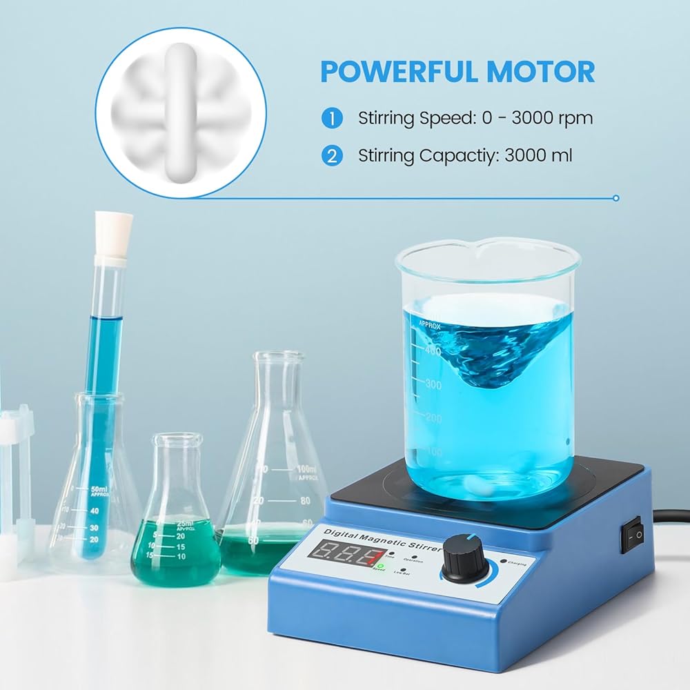 محرك قوي: لا تغفل عن قوة هذا الخلاط الصغير. بفضل المحرك القوي، فإنه يحرك السوائل حتى 3000 مل بسرعة 3000 دورة في الدقيقة دون عناء ويحقق التحريك الموحد. ضمان الخلط الفعال حتى مع كميات السائل الكبيرة، مما يوفر لك وقت التجربة الثمين