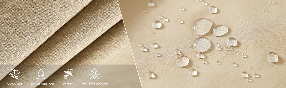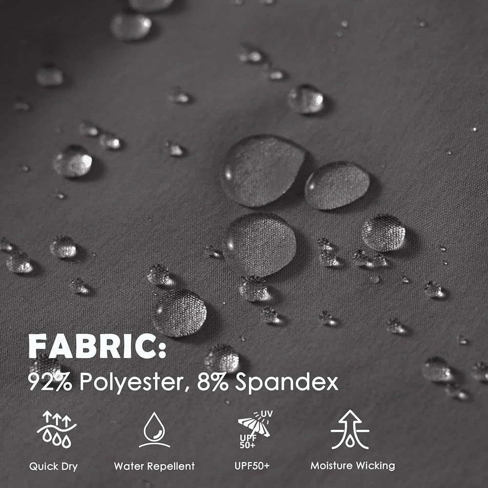 تقنية متقدمة: أقمشة خفيفة الوزن وسريعة الجفاف وقابلة للتنفس يمكنها امتصاص الرطوبة والعرق، مما يحافظ على جفاف الجلد طوال اليوم. لمسة نهائية متينة طاردة للماء، ومقاومة للأمطار الخفيفة والبقع
