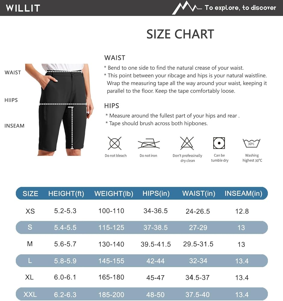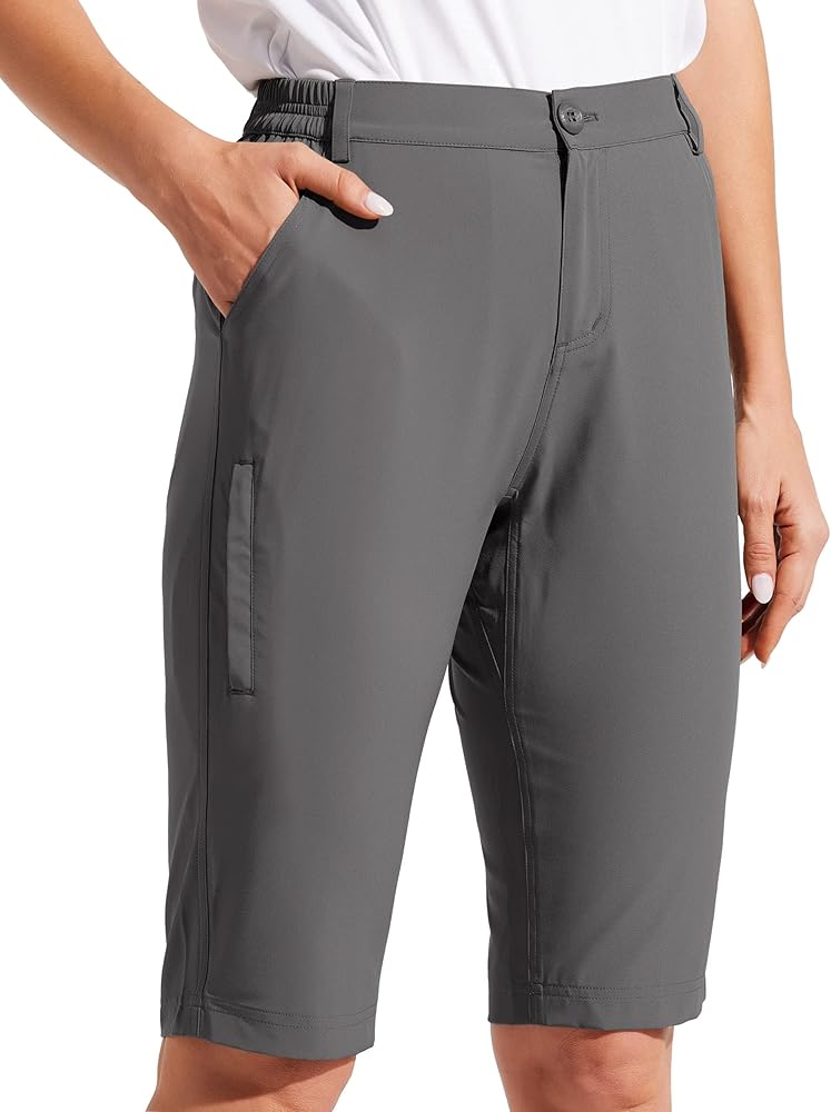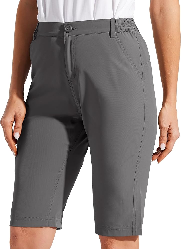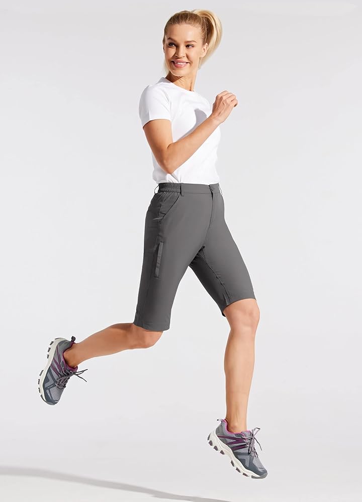 شورت نسائي للمشي لمسافات طويلة بطول 13 بوصة يوفر مظهرًا لطيفًا وأنيقًا، وبنية تعزز الأداء، ومناسبة للمشي لمسافات طويلة والجولف والتخييم والسفر والمشي والارتداء اليومي في أيام الصيف. نصائح: إذا كان مقاسك بين مقاسين، فيرجى طلب مقاس أكبر بدرجة واحدة لتناسب أكثر استرخاء