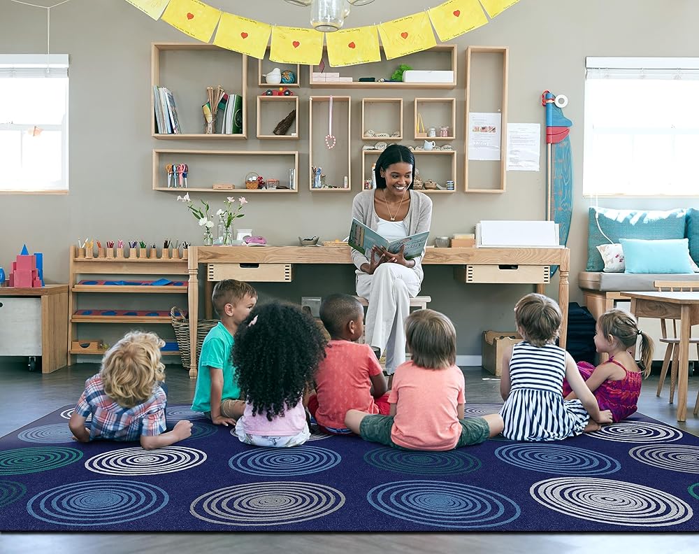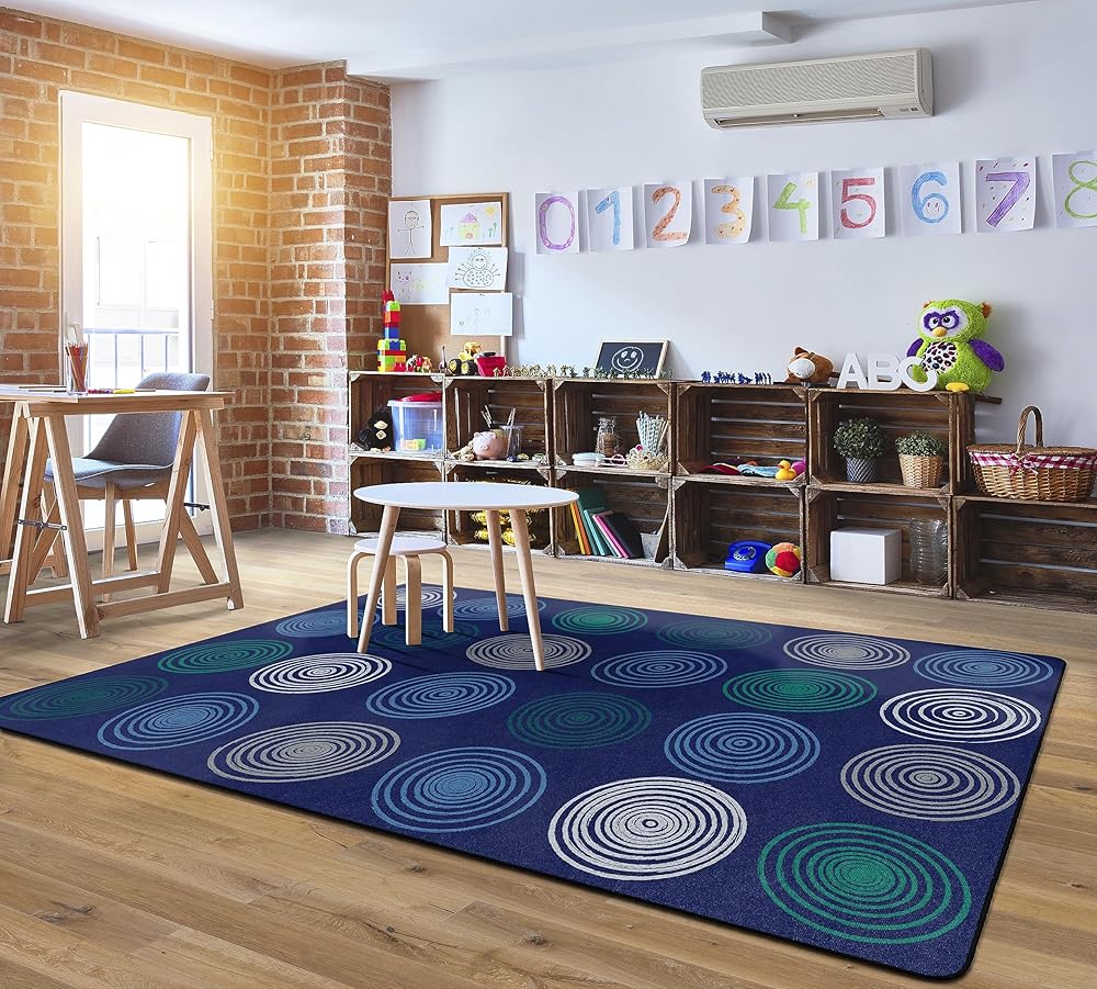 Sometimes classroom seating rugs can be busy. If your classroom could use a little less 'busy', the new Circles classroom seating carpets are one more strategy to create a little more calm in your classroom. All Flagship Carpets are CRI green Label Plus certified and made 100 percent in the USA.