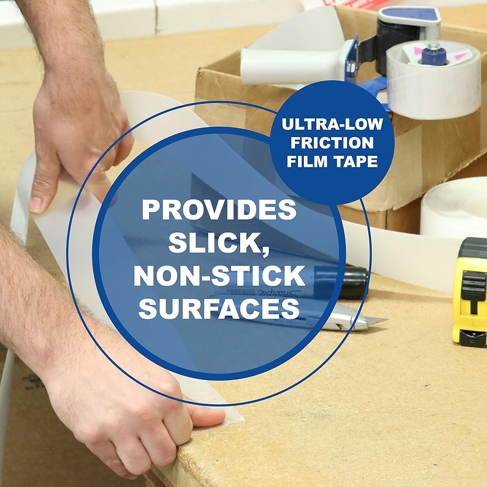 Applications: this transparent tape with low surface friction and self-lubrication, can be used on a slithering, dissimilar surfaces where lubrication is not possible. It offers friction-free movement of drawers, doors, shelves, and cabinets