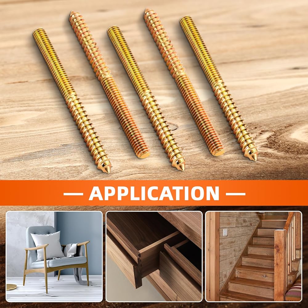 Double ended screws are self-tapping wood threads at one end, which can be directly locked into the soft material (wood). The other end is a mechanical thread, which can be locked with the nut. widely used in wood.