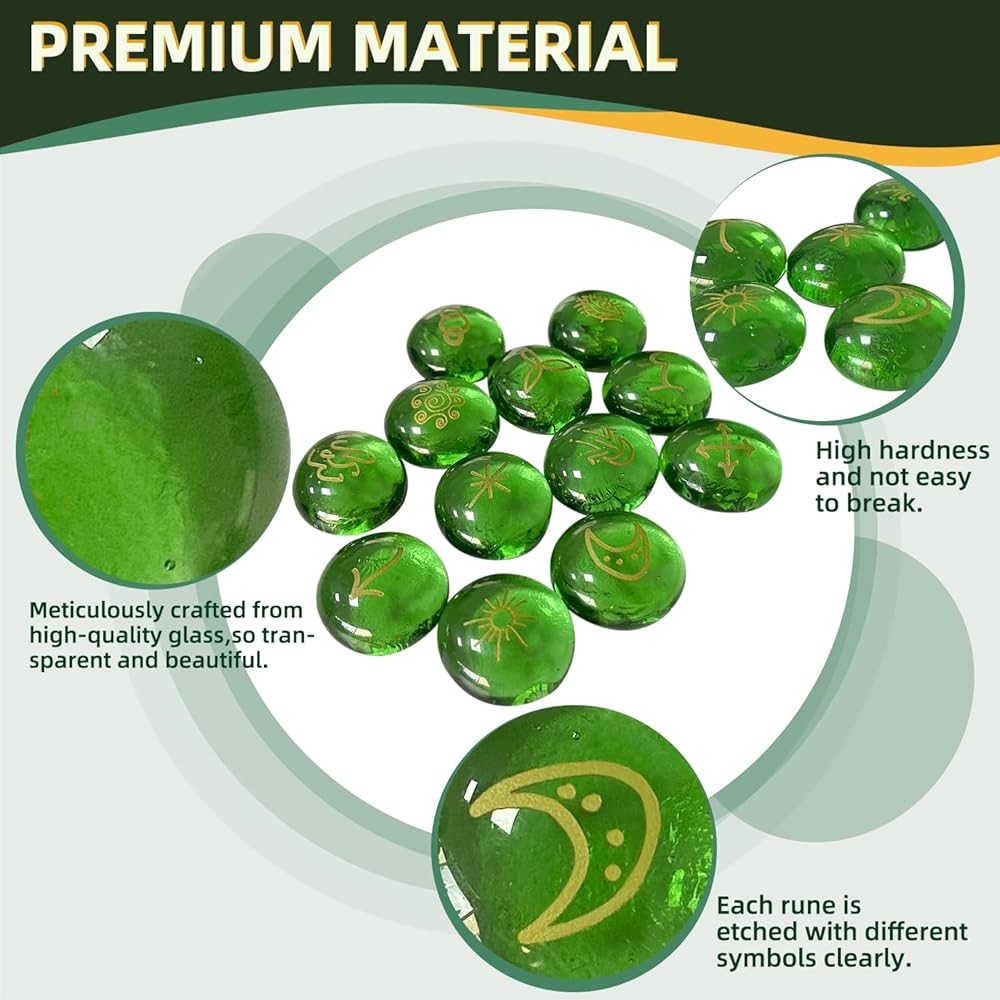 كيفية الاستخدام - مجموعة الأحرف الرونية مستوحاة من التقاليد الإسكندنافية القديمة، ولكنها مثالية للصوفي الحديث، ومفيدة لمولد الطاقة الإيجابية، والشفاء، والتأمل، وراحة البال، والتوازن والتركيز. مجرد الأحرف الرونية الزجاجية المقابلة، ثم فكر في المشكلة. يمكن استخدامه لمساعدتك في التنبؤ بثروتك وحياتك العاطفية وسعادتك ومستقبلك.