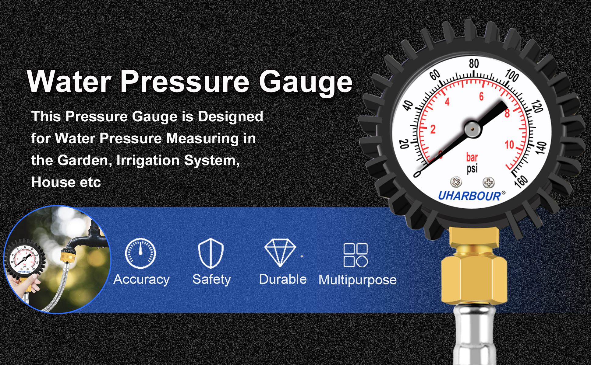 مراقبة دقيقة للضغط: مع قرص كبير مقاس 2 بوصة، يوفر مقياس ضغط المياه هذا قراءات دقيقة وسهلة القراءة، حتى تتمكن من مراقبة مستويات ضغط المياه عن كثب. سواء كنت قلقًا بشأن تدفق المياه في الأنابيب الخاصة بك، الأجهزة، أو نظام الري، هذا المقياس يغطي احتياجاتك.