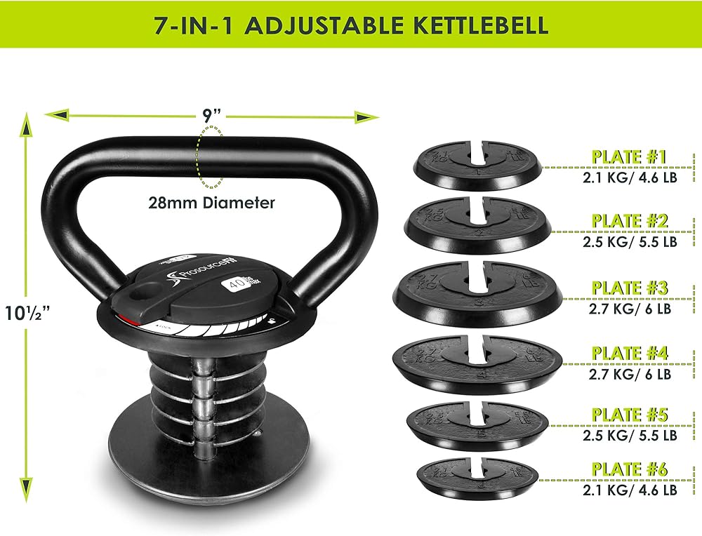 7 WEIGHTS IN ONE – Train on any weight level with one kettlebell! The removable weighted disks allow you to exercise with 10-lb, 15-lb, 20-lb, 25-lb, 30-lb, 35-lb, and 40-lb. The customizable weight lets you compact your kettlebell set into one!