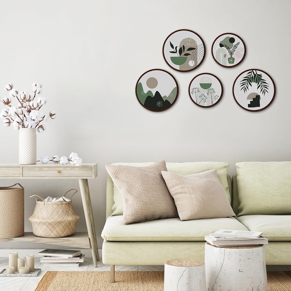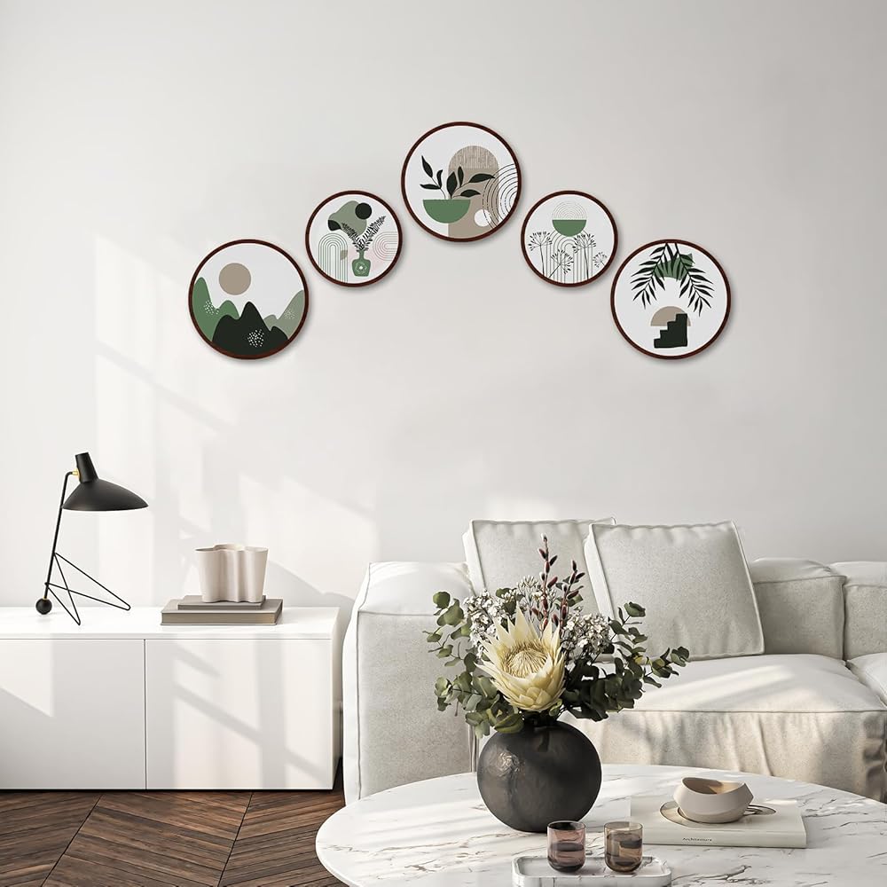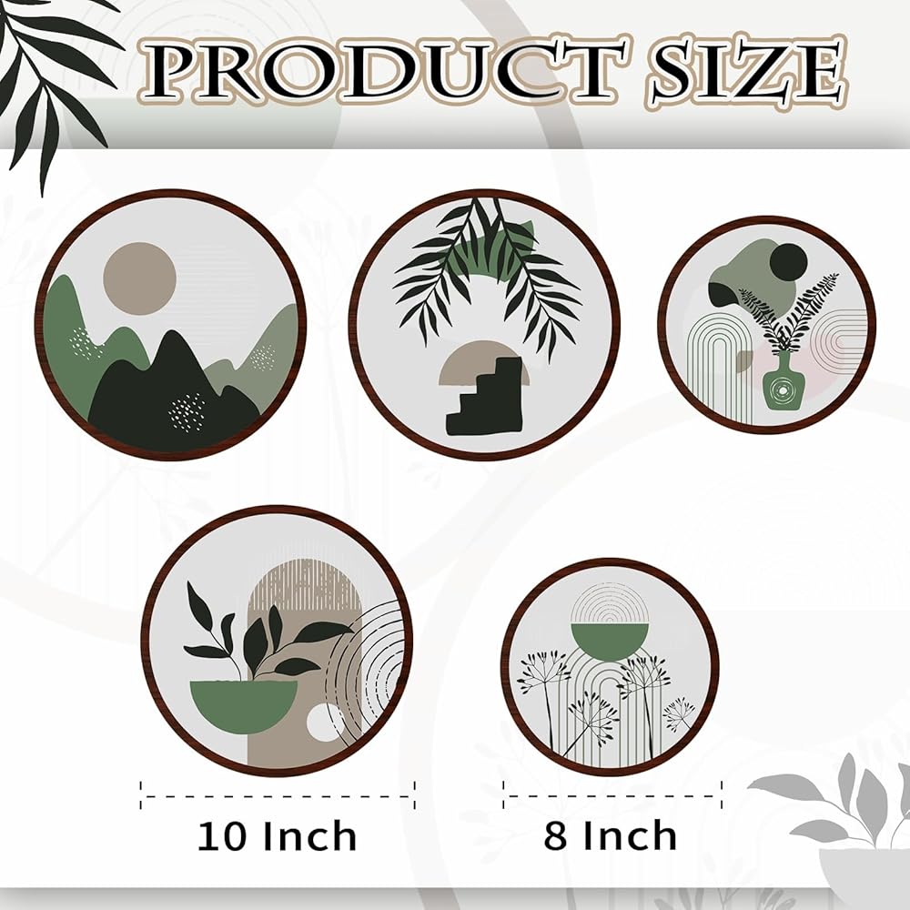 المقاس المتضمن: يأتي بمقاسين من الأعمال الفنية الجدارية الجمالية، 3 قطع بقطر 10 بوصات وقطعتين بقطر 8 بوصات، الحجم هو التوافق المثالي مع النمط، ويمكنك تركيبها في أماكن مختلفة بأشكال مختلفة تجمع الأنماط والتصميمات الرائعة وتخلق جوًا أنيقًا ومريحًا لمنزلك.