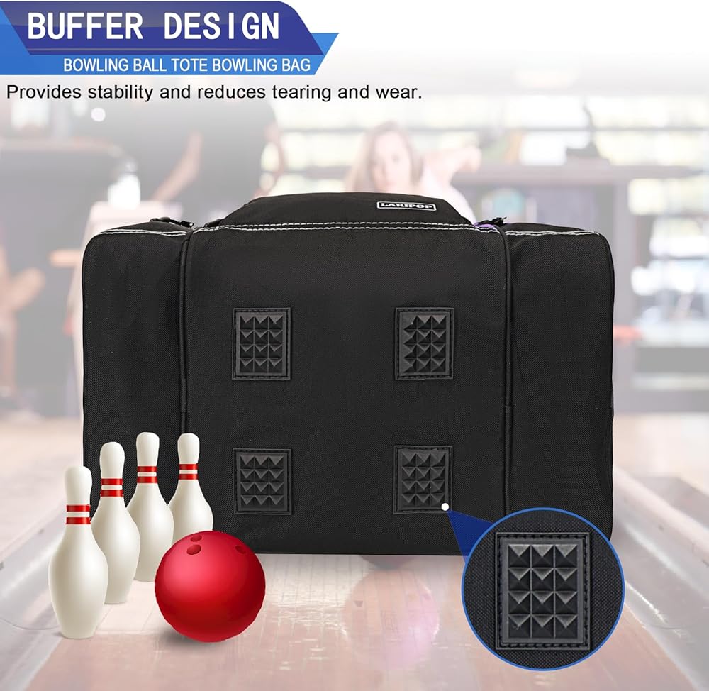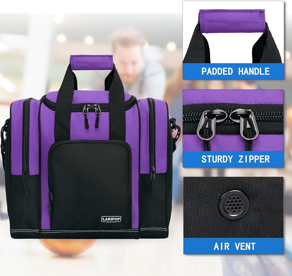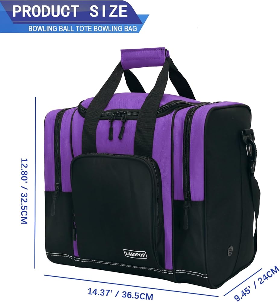【مساحة كافية لجميع معدات البولينج】تحتوي حقيبة كرة البولينج LARIPOP على مساحة كافية لتخزين جميع ملحقات ومعدات البولينج الخاصة بك، وتتكون من حجرة رئيسية لكرة بولينج واحدة، وجيبين جانبيين (مع فتحات تهوية) لزوج من الأحذية (حتى الرجال مقاس 14) وغيرها من المعدات، وجيب أمامي بسحاب لتخزين محفظتك، ومفاتيحك، والهاتف الخلوي، إلخ.