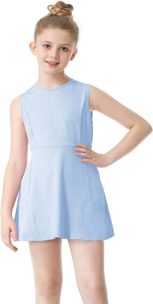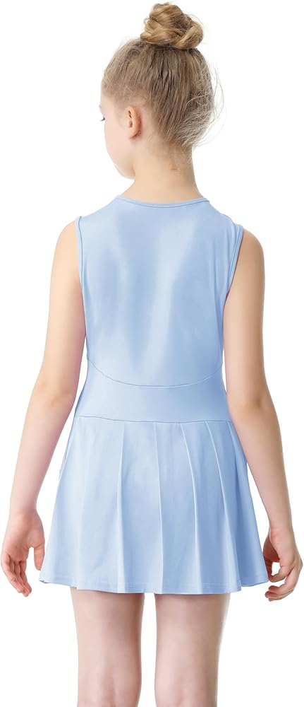 Eymitory Girls Tennis Golf Pleated Dress Outfit Sleeveless Workout Athletic Dresses Tank Golf with Built-in Shorts Pockets