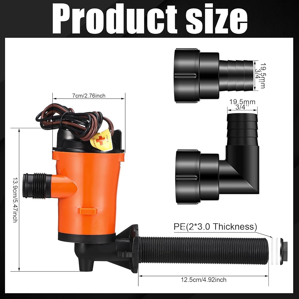 آمنة وقابلة للغمر: مضخة Livewell قابلة للغمر بالكامل ومؤمنة بسلك معلب مقاس 18؛ يبلغ طول مدخل الهواء الملولب 90 درجة 125 ملم، بما في ذلك تكوينين مختلفين لخرطوم المخرج، مستقيم و90 درجة
