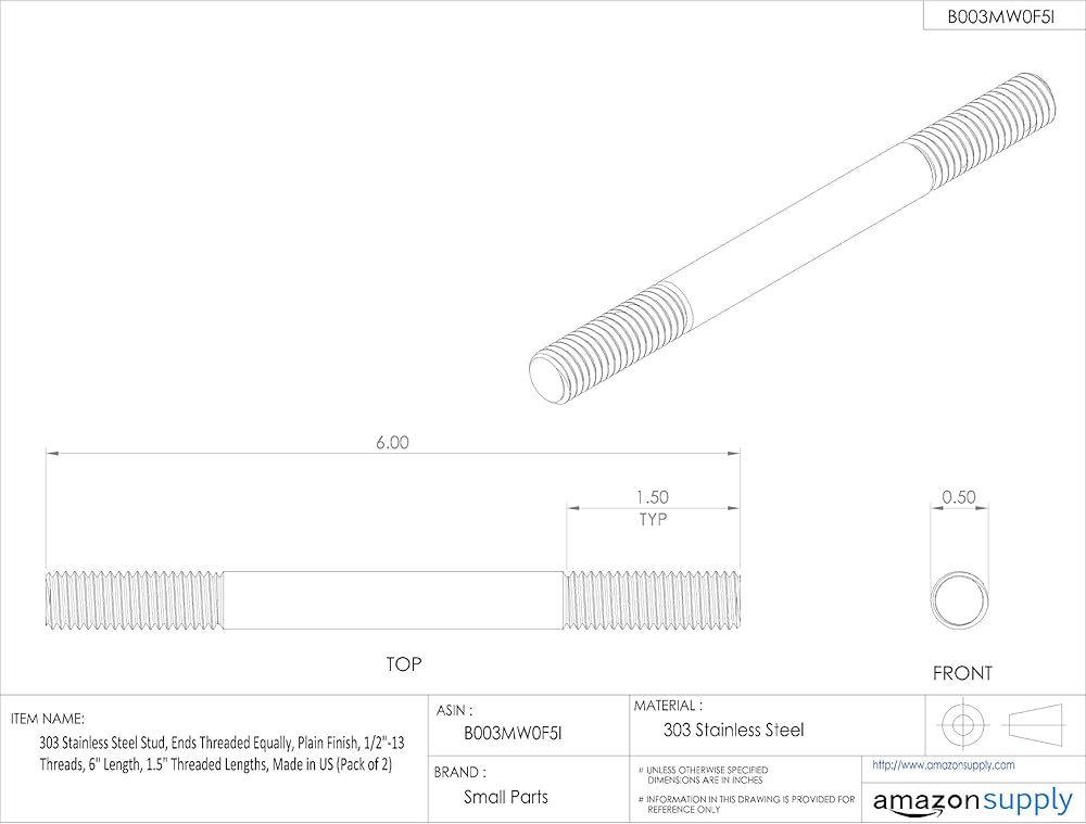Material is 303 Stainless Steel specifically designed to exhibit improved machinability