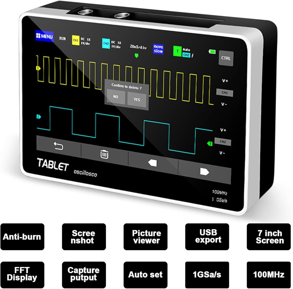Handheld Tablet Oscilloscope Upgraded 2 Channel 100MHz Bandwidth 1GSa/s Sampling Rate 7" TFT LCD Touch Screen Oscilloscope & Function Signal Generator
