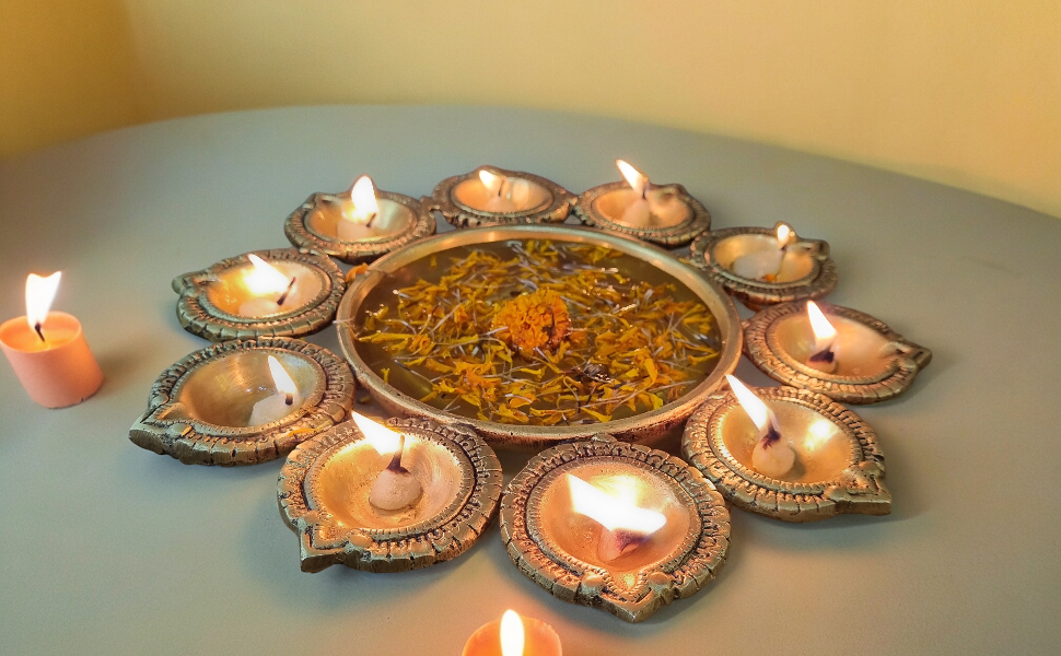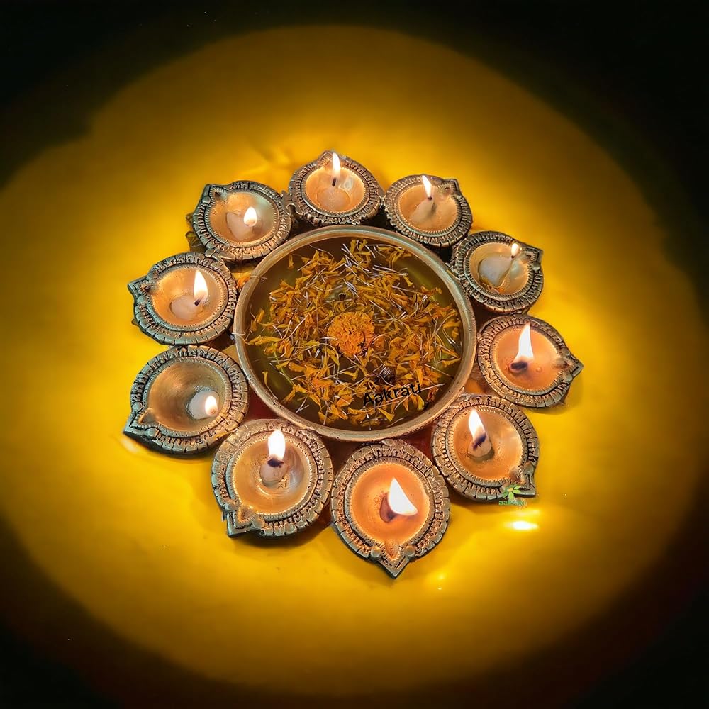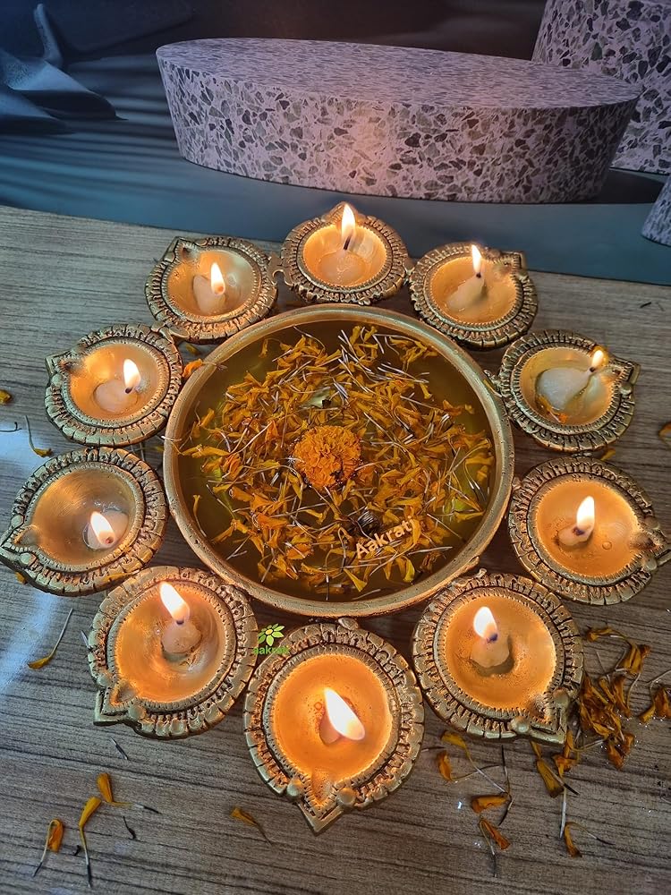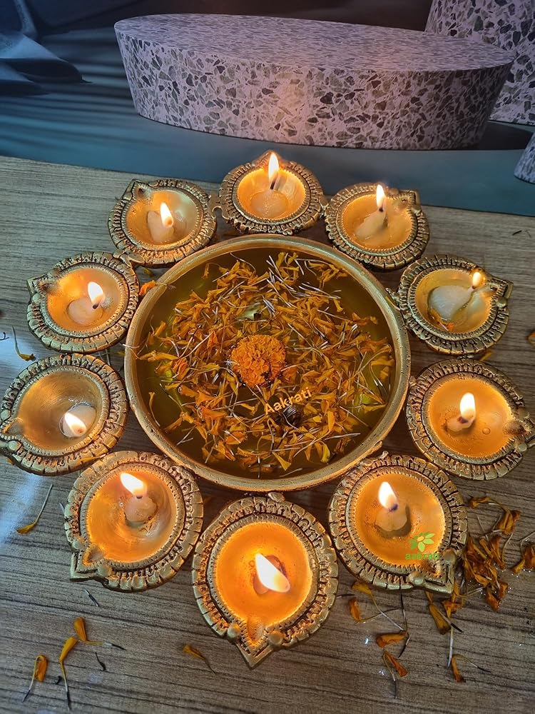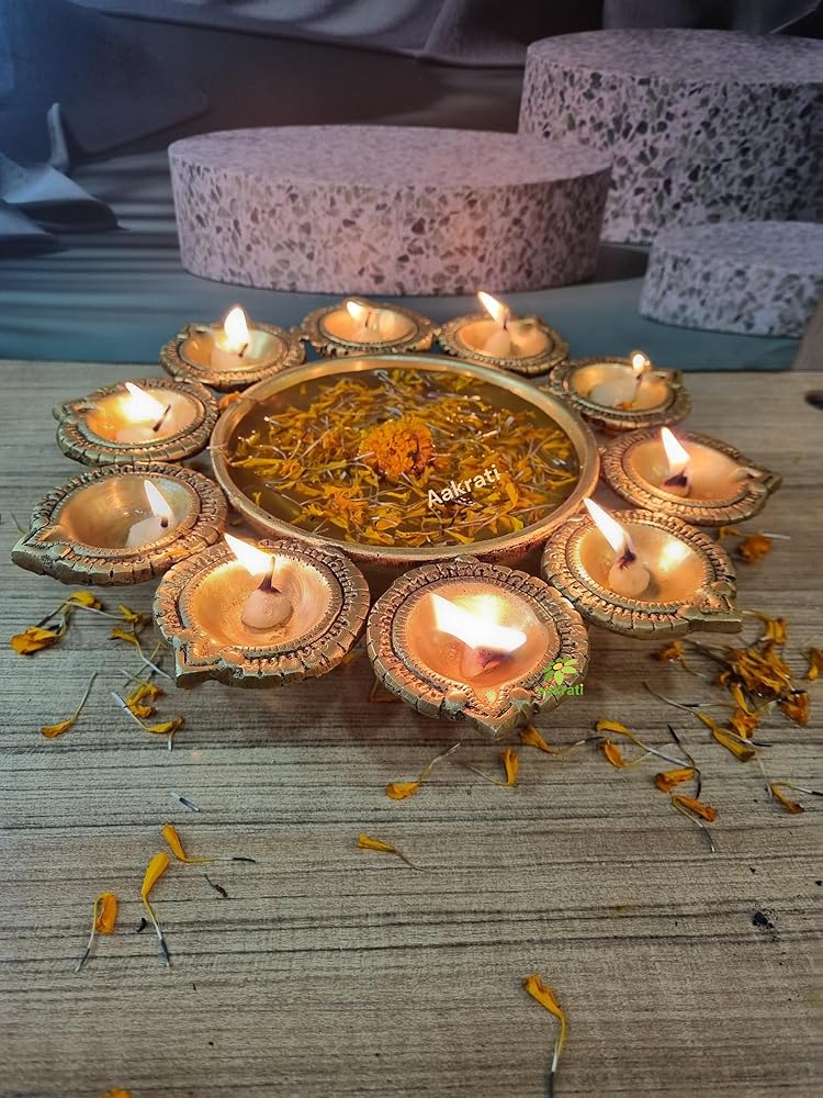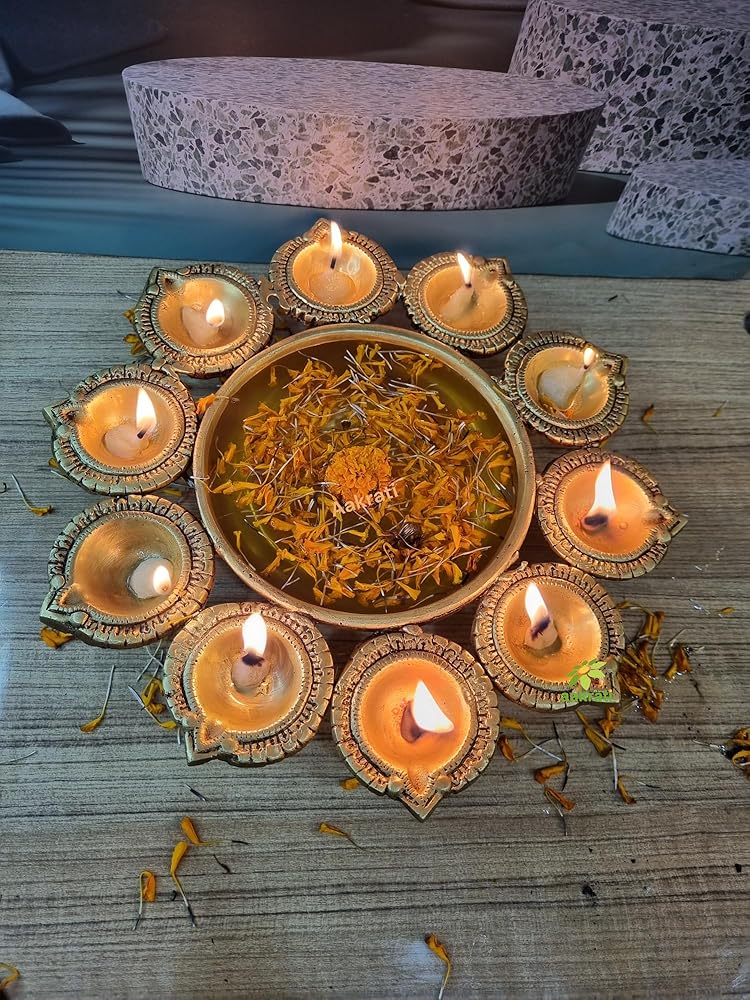 - ديكور ديوالي: مثالي لاحتفالات ديوالي، هذا الأورلي النحاسي يجلب سحر احتفالي إلى منزلك.