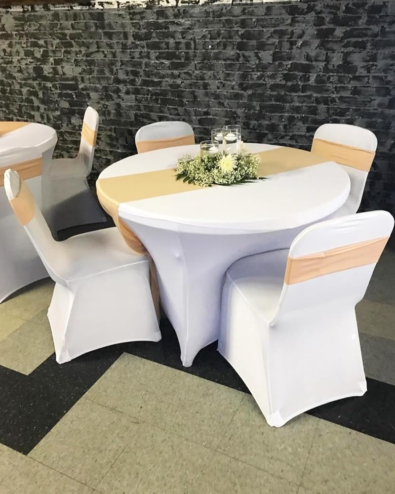 اغطية كراسي بيضاء 50 قطعة لكراسي الولائم. المناسبة: الزفاف، والحفلات، وأعياد الميلاد، والفنادق، والذكرى السنوية، والولائم، وغرفة الطعام، وديكور المناسبات الخارجية وما إلى ذلك.