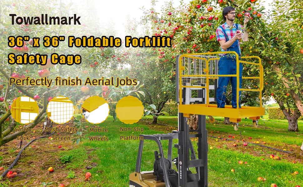 【صلب متين وتخزين مطوي】منصة الرافعة الشوكية الخاصة بنا مصنوعة من الفولاذ عالي التحمل لتحقيق أقصى قدر من المتانة. يتميز سطح الطلاء الأصفر بمقاومة الصدأ والتآكل الفعالة. علاوة على ذلك، يمكن لقفص الأمان للرافعة الشوكية Towallmark أن يتم تجميعه وتفكيكه بسهولة، وطيه وتخزينه في حالة عدم الاستخدام، ومساحة تخزين صغيرة.