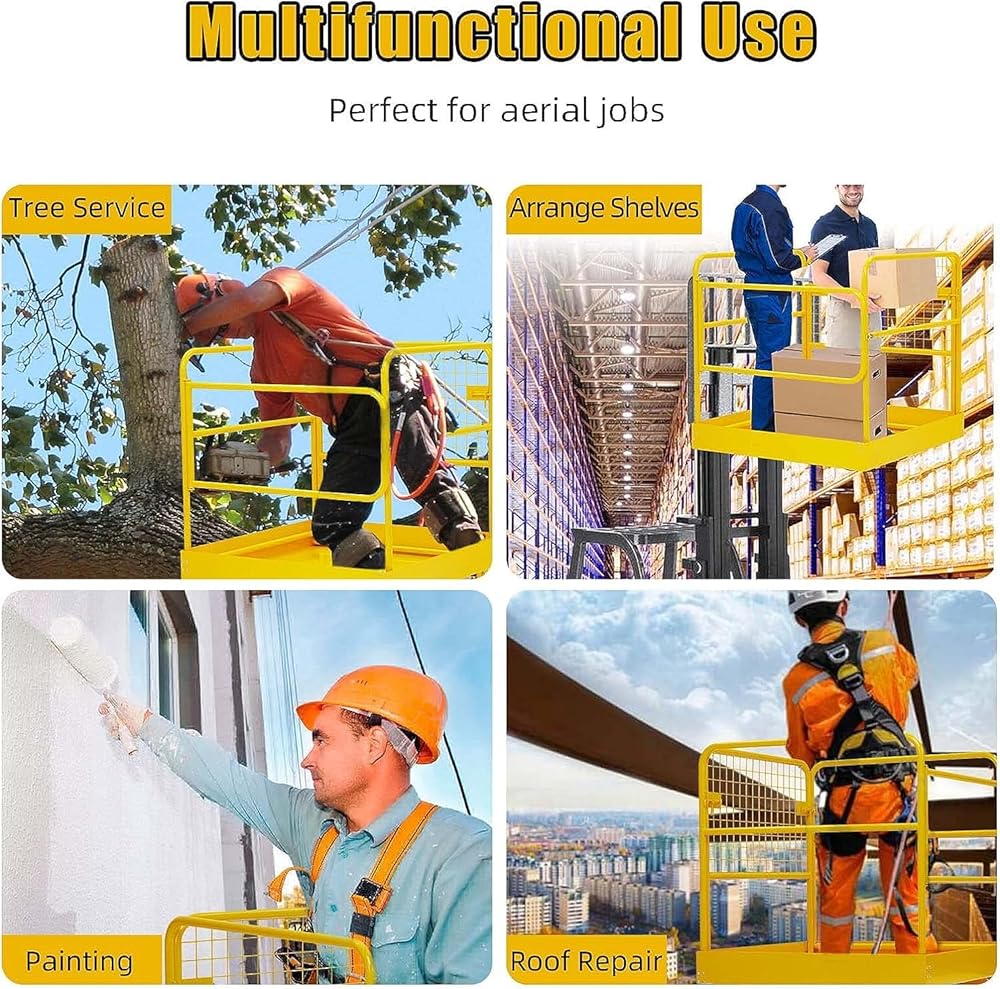 【حماية شاملة】حافظ على سلامتك وموظفيك مع هذه السلة الفولاذية شديدة التحمل. وهي معززة بدرابزين وأرضية غير قابلة للانزلاق للمساعدة في منع السقوط والإصابات. كما أنها تحتوي على شاشة أمان شبكية تساعد على إبقائك آمنًا بالداخل. بالإضافة إلى ذلك، دبابيس الاحتفاظ بالشوكة لتثبيت الوحدة على الشوك، والمزيد من الأمان وتساعدك على الدخول والخروج بسهولة.