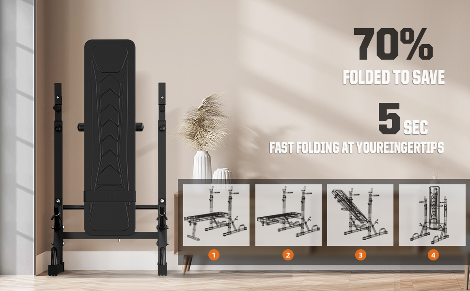 • 【توفير المساحة للتخزين】 يمكن طي مقعد الوزن الأوليمبي مع حامل الجرس بسرعة، وهو صغير جدًا وسهل التخزين. يمكنك وضعه على الحائط لتوفير المساحة، كما أن الحامل الفولاذي السميك يجعله حرًا في الوقوف وليس من السهل أن تسقط.