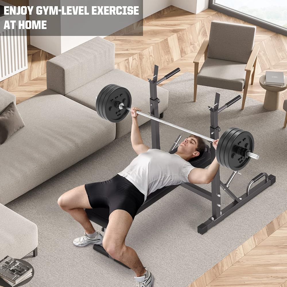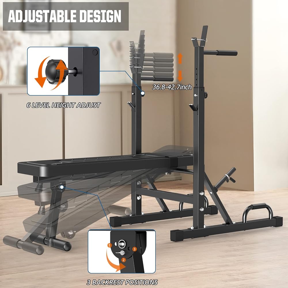 مقعد رفع الأثقال مع حامل، مقعد تمرين قابل للتعديل مع حامل أثقال، حامل حامل ضغط مقعد قابل للطي، متعدد الوظائف لتدريب القوة في صالة الألعاب الرياضية المنزلية