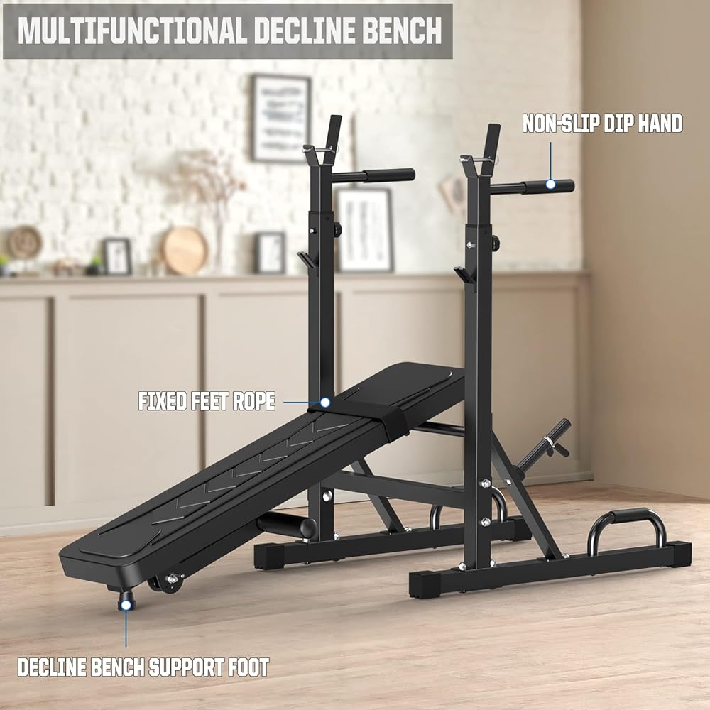 • 【الكل في واحد】 احصل على مقعد التمرين بيكينج متعدد الوظائف، ما تحصل عليه ليس فقط مقعد رفع الأثقال، ولكن أيضًا رف الأثقال ومحطة الغطس وآلة الدفع. يساهم في مجموعة متنوعة من التدريبات مثل الضغط على المقعد، تمارين الضغط والجلوس ومقعد الدمبل ومحطة الغطس والمزيد. مثالية للتدريب الشخصي وحتى صالة الألعاب الرياضية المنزلية.