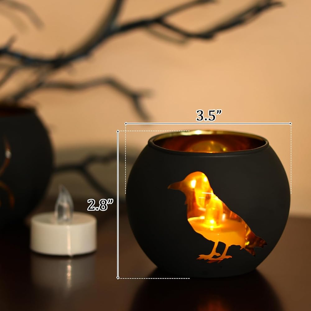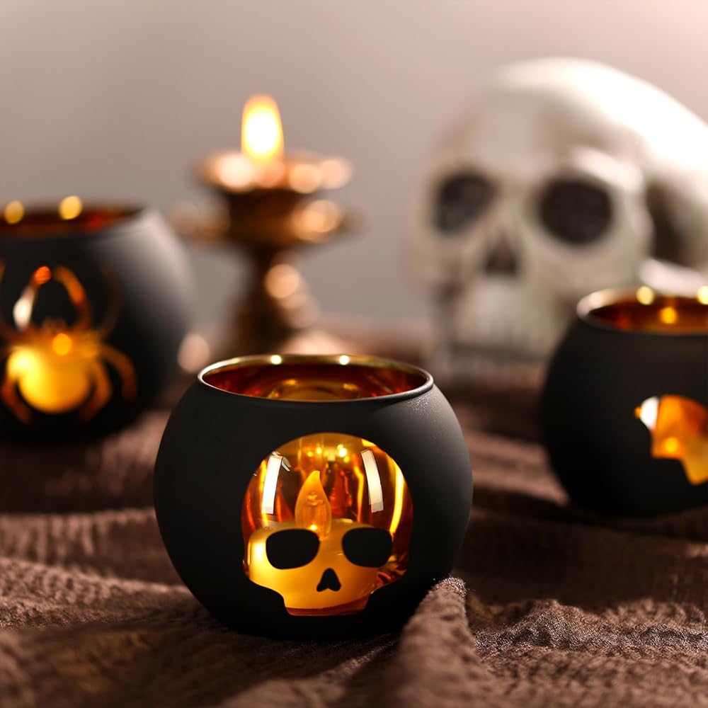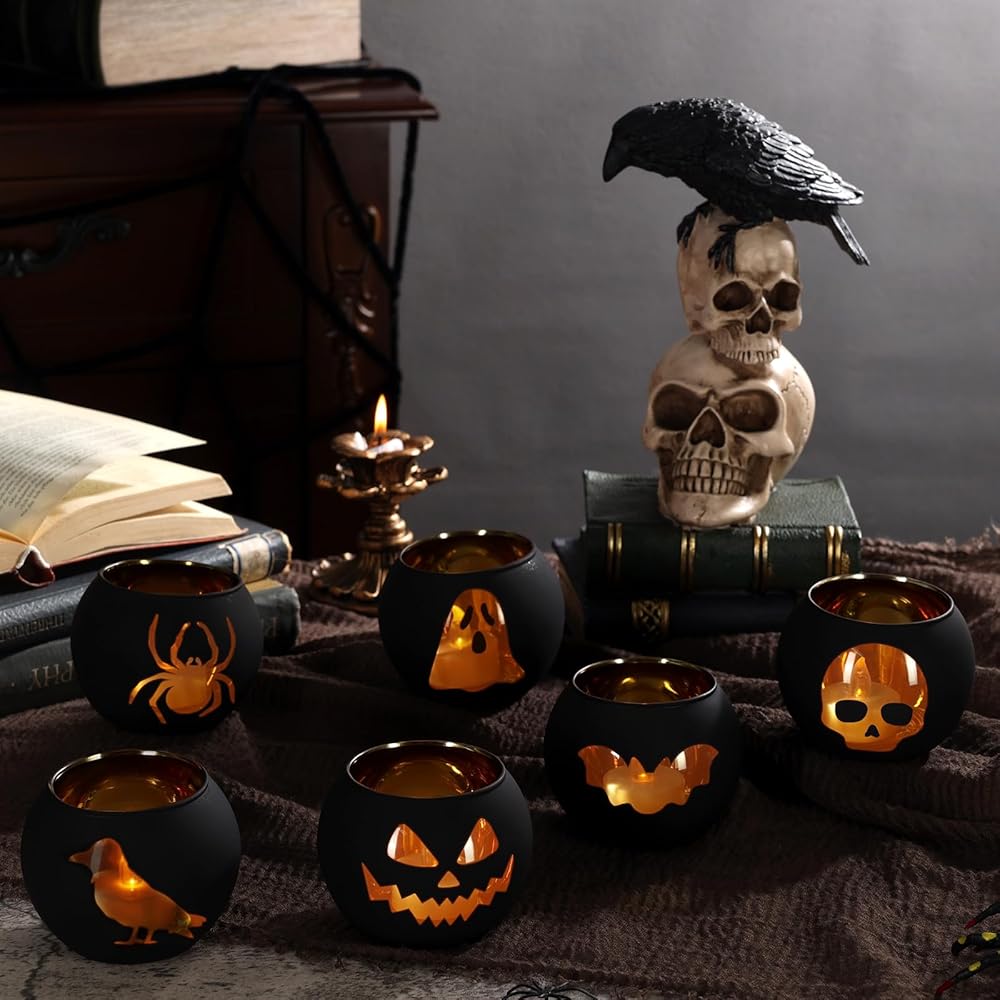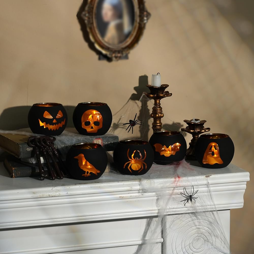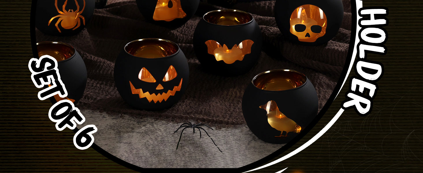 ديكور الهالوين - هذه المجموعة المكونة من 6 قطع من حامل الشموع النذرية على طراز الهالوين الأسود القوطي. من الأفضل وضعها في الداخل كقطع مركزية وديكور طاولة بإضاءة الشموع لإضافة متعة الرعب في عيد الهالوين إلى منزلك. يمكن أن تكون أيضًا هدية جيدة لعيد الهالوين لأصدقائك.