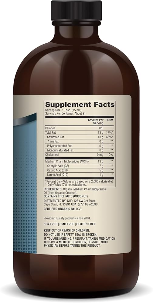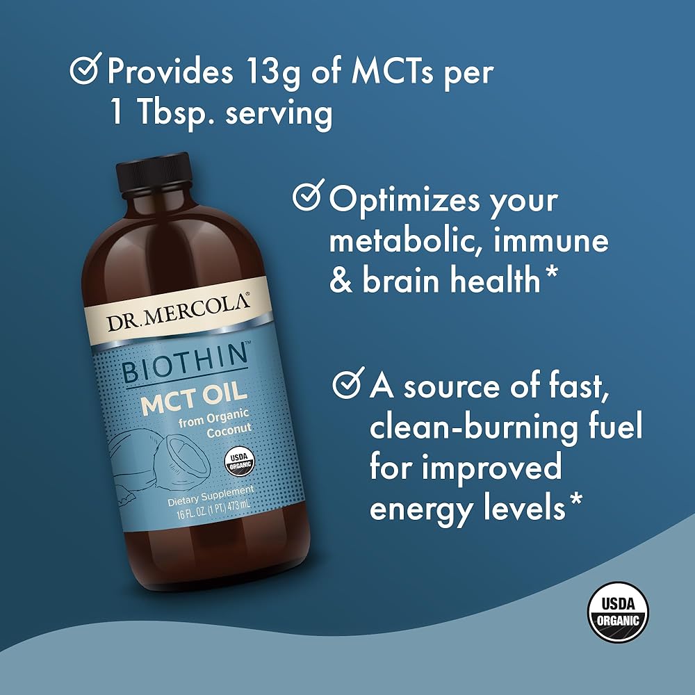 Dr. Mercola MITOMIX KETO Organic MCT Oil 16 Fluid Ounce contains a blend of the MCTs C8 Caprylic Acid and C10 Capric Acid with a small amount of C12 Lauric Acid. And it's sourced only from organic coconut.