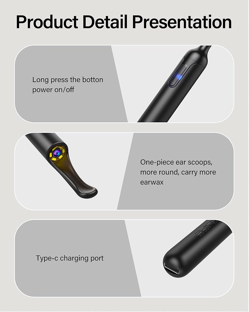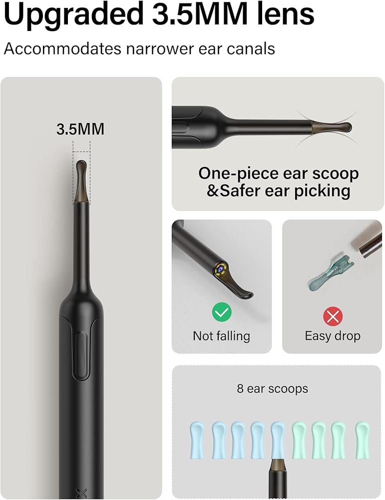 ملعقة أذن سيليكون آمنة وموثوقة: تتميز أداة إزالة شمع الأذن بتصميم متكامل ومجهزة بمغرفة أذن سيليكون مرنة وناعمة للغاية، وهي ناعمة وموثوقة. لا داعي للقلق بشأن خدش قناة الأذن أثناء إزالة شمع الأذن. تصميم من قطعة واحدة يمنع مغرفة الأذن من السقوط. حوادث السلامة الناجمة عن سقوط قناة الأذن، توفر لك كاميرا تنظيف الأذن من Bebird تجربة تنظيف أذن مريحة وموثوقة