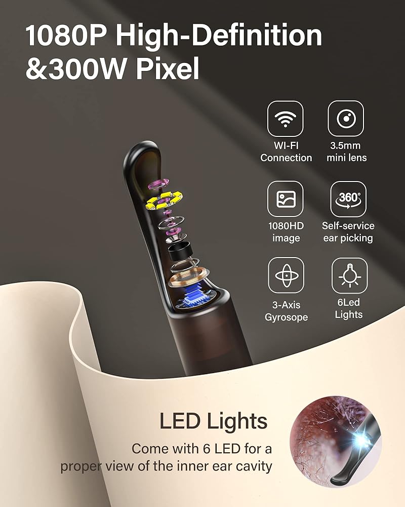 【كاميرا أذن 1080 بكسل و3 ميجا بيكسل】تم تجهيز إزالة شمع الأذن من Bebird بكاميرا أذن 1080 بكسل، وتقنية كاميرا عالية الدقة 3.0 ميجابكسل مطورة و6 مصابيح بيضاء LED قوية، مما يجعل شمع الأذن في قناة الأذن مرئيًا بوضوح، مما يجعل التقاط الأذن أكثر أمانًا.