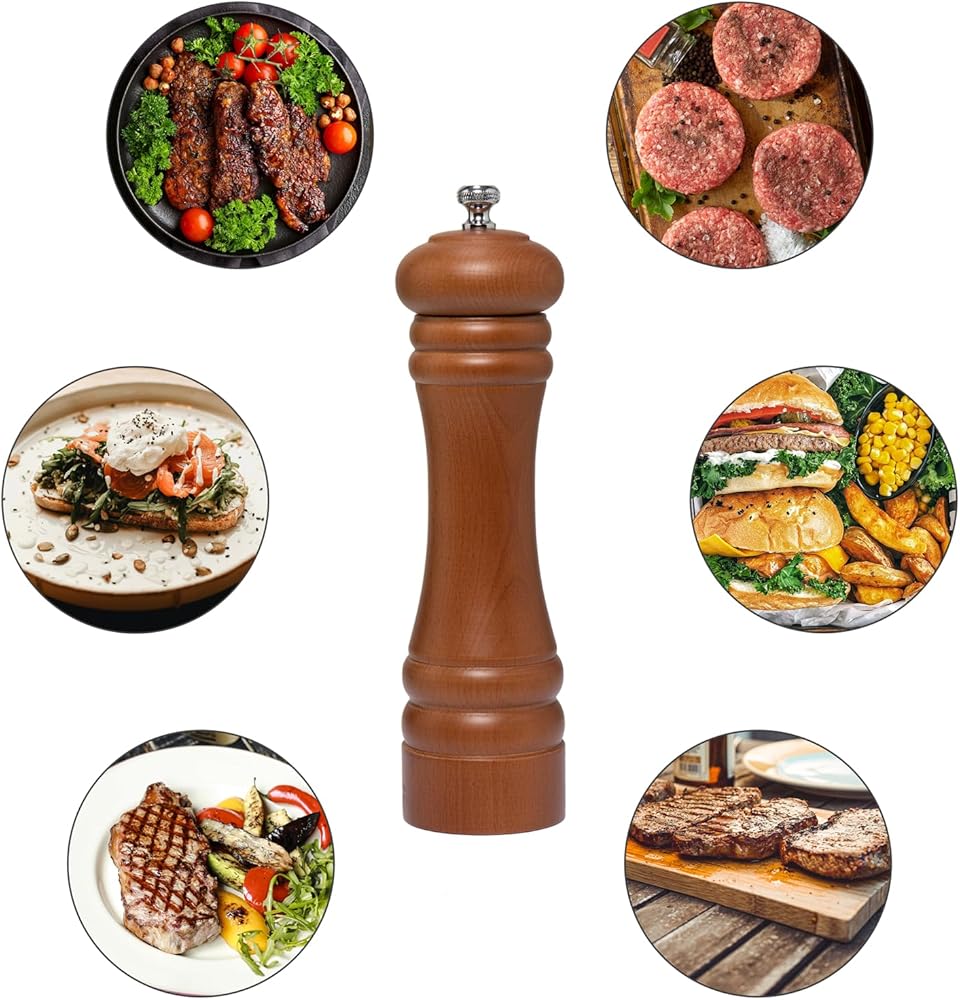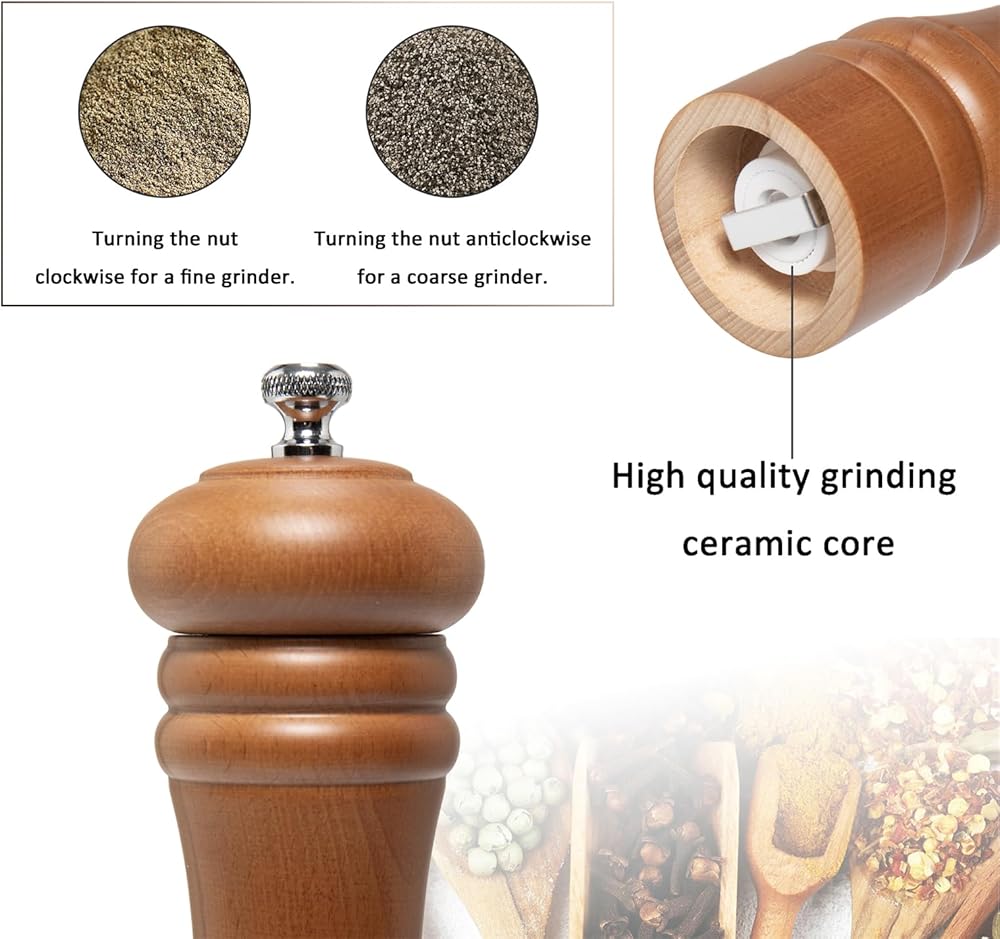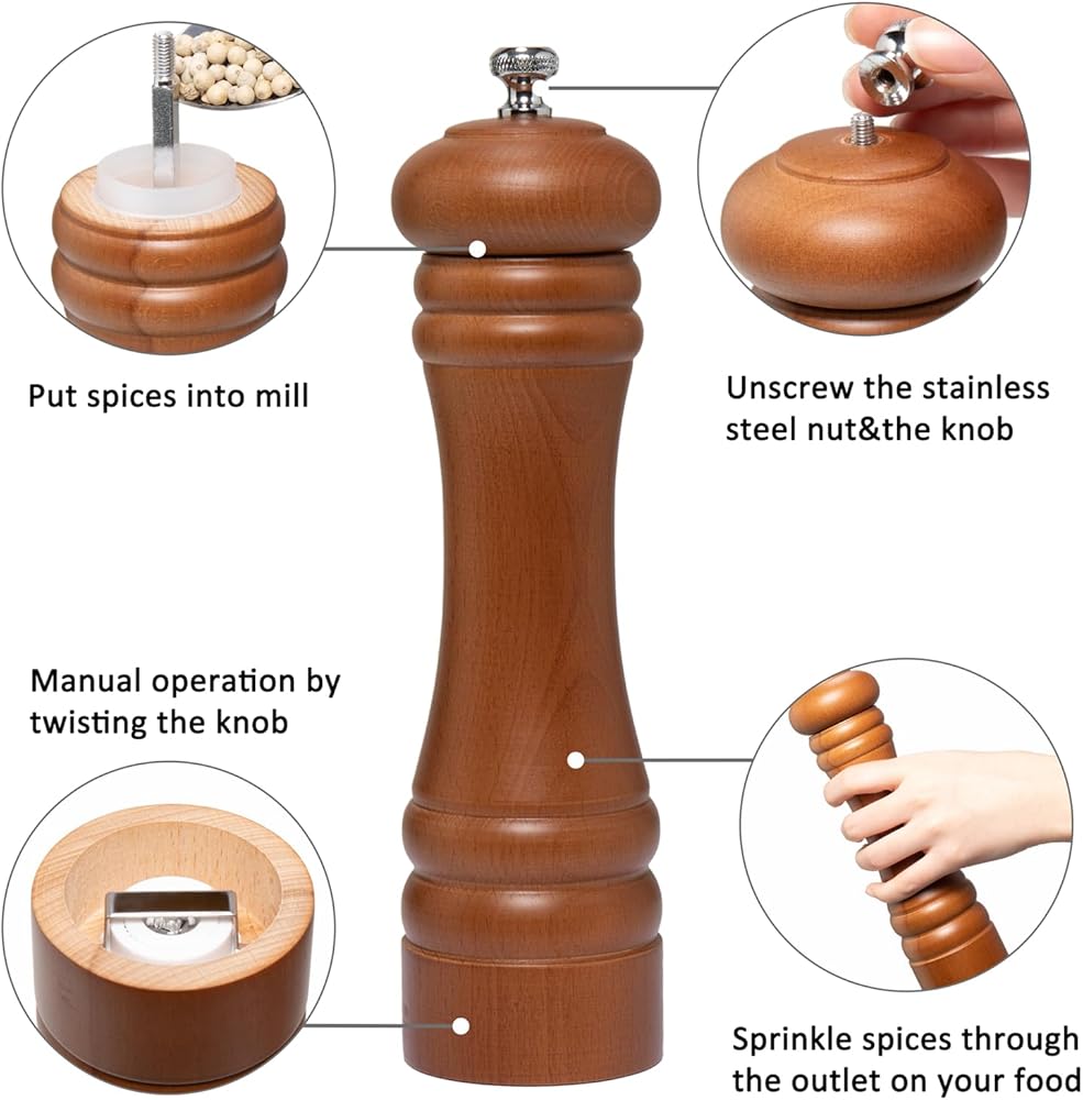 • مطحنة الفلفل الخشبية ومطحنة الملح: مطحنة الفلفل الخاصة بنا مصنوعة من خشب الزان الطبيعي، مما يخلق منتجًا قويًا يصعب كسره. يبلغ قطر المنتج 2.75 بوصة وطوله 8 بوصات للحصول على حجم حمل مريح. وسيضيف اللون الأسود الأنيق إلى الجاذبية البصرية لأي إعداد طاولة.