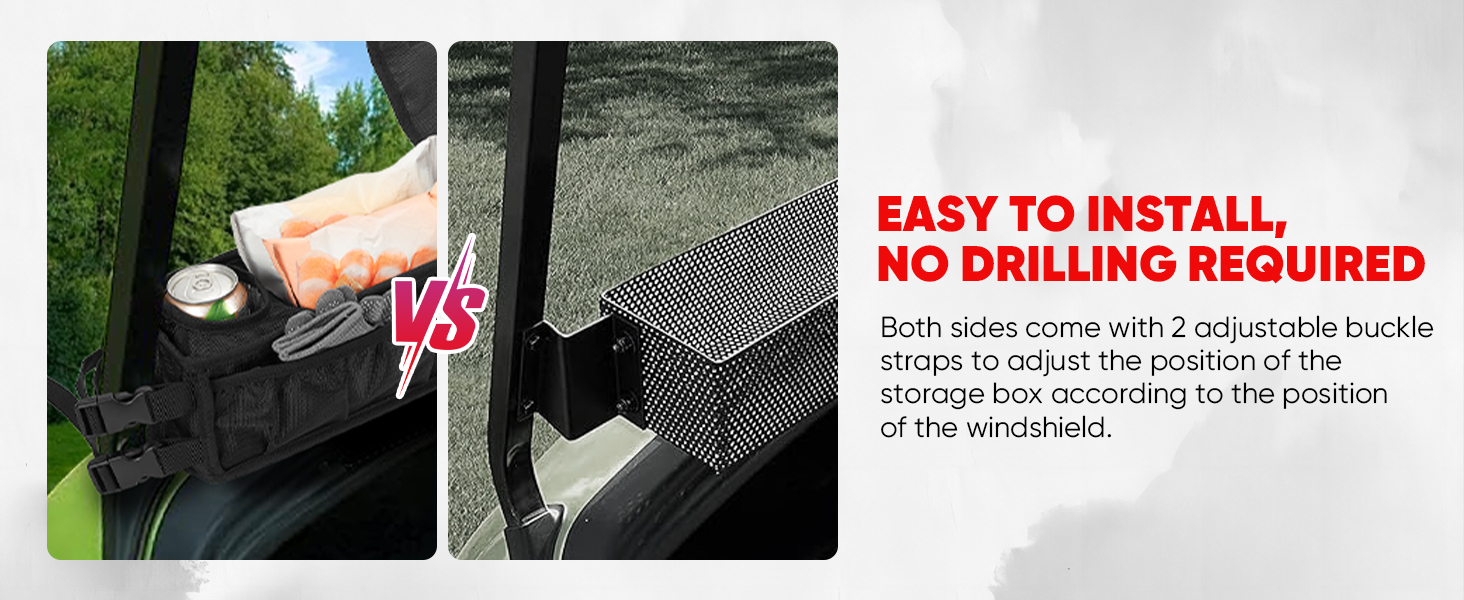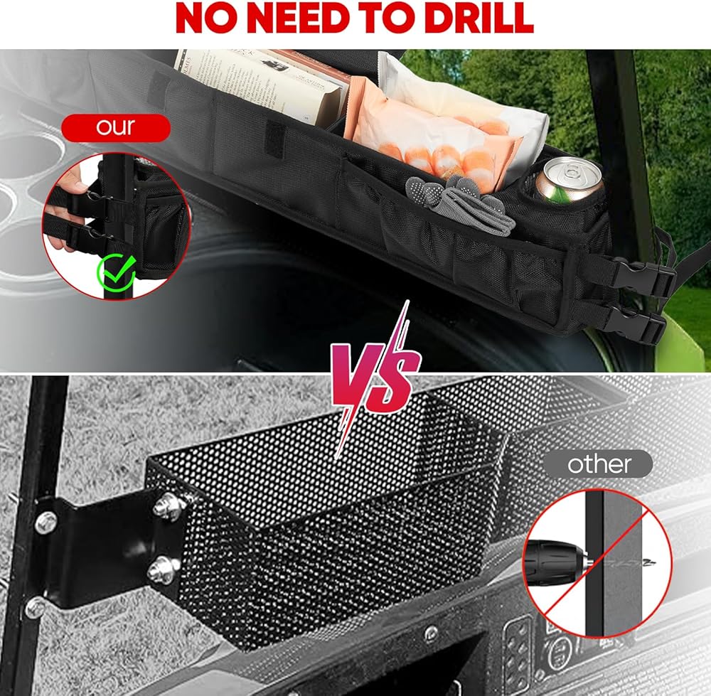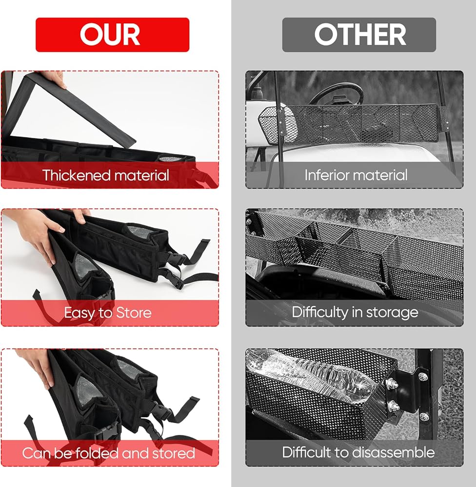 【توافق عالمي】: متوافق مع جميع موديلات عربات الجولف، بما في ذلك EZGO وClub Car وYAMAH Drive وICON وKandi Electric Golf Cars. يوفر مساحة تخزين إضافية في مقدمة عربة الجولف الخاصة بك.
