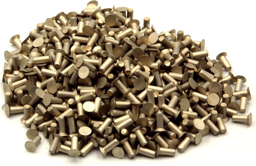 مسامير صلبة غاطسة مقاس 3/32 بوصة، طول 1/4 بوصة، 1/8 رطل. عبوة من 500 قطعة. ألومنيوم ناعم، 100 درجة. غاطسة