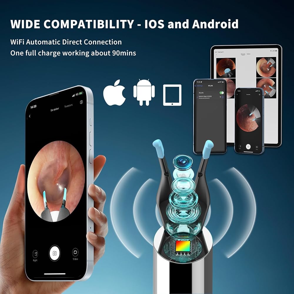 تصميم الكل في واحد: تعمل أداة إزالة شمع الأذن هذه كمنظف للأسنان ومنظار للأذن، مما يسمح لك بفحص الأذنين والأسنان والعناية بها في جهاز واحد صغير الحجم.