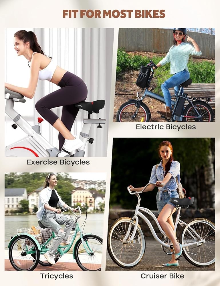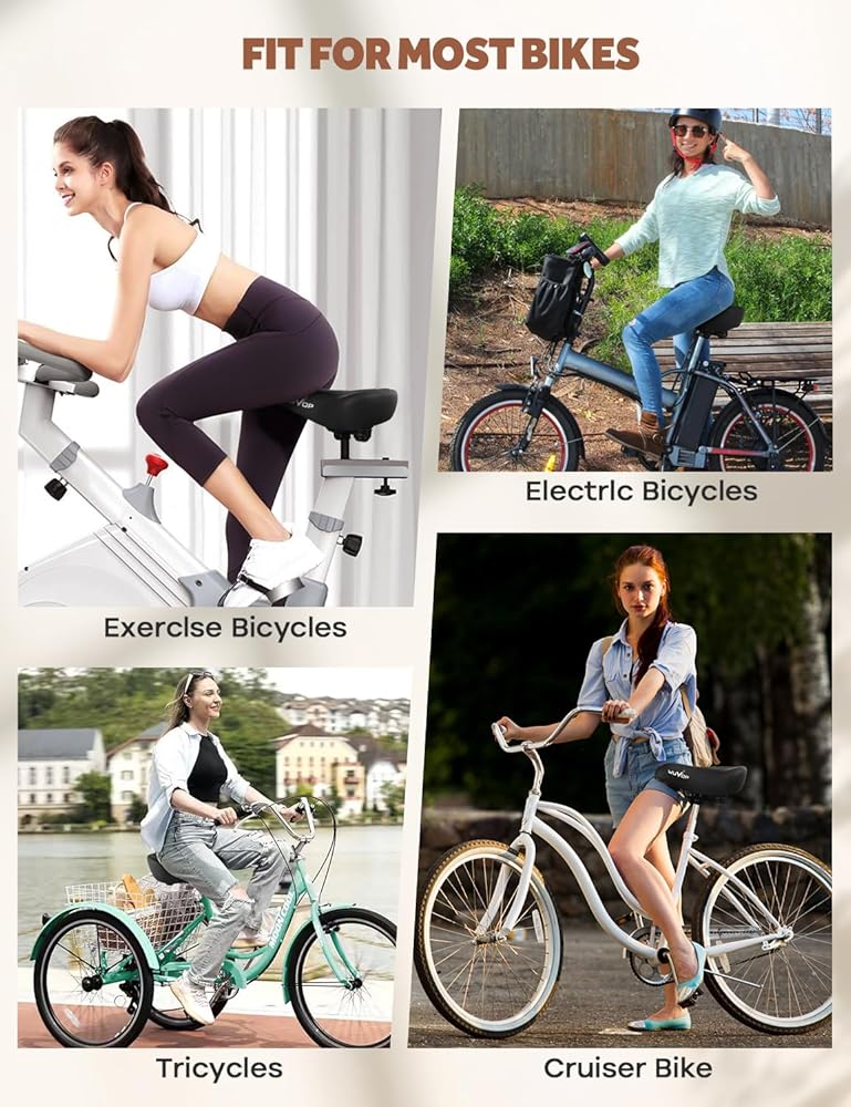 【Universal Fit Bike Seat】2024 NEW WUVOP oversized bike seat for heavy riders specially designed for people with big buttocks. Super Comfort bicycle accessories Compatible with peloton bikes, Echelon bikes, electric bikes, mountain bikes, spinning bikes, exercise bikes, beach cruiser bikes, e-bikes, stationary bikes, workout bikes, folding bikes and adult tricycles.