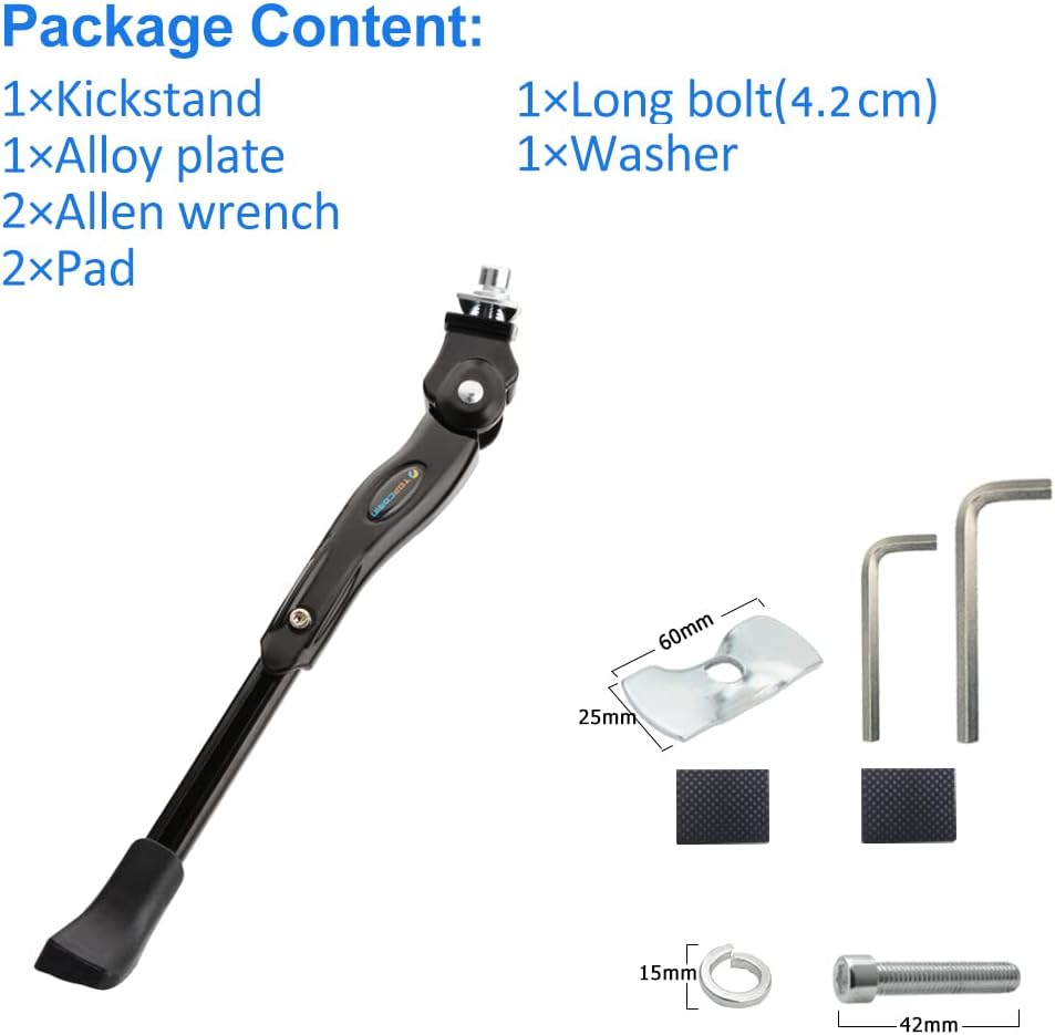 مسند الدراجة قابل للتعديل من سبائك الألومنيوم ومسند جانبي للدراجة مناسب للدراجة الجبلية مقاس 14-29 بوصة/دراجة الطريق 700/BMX (للدراجة مقاس 24 بوصة - 26 بوصة - 28 بوصة - 29 بوصة)