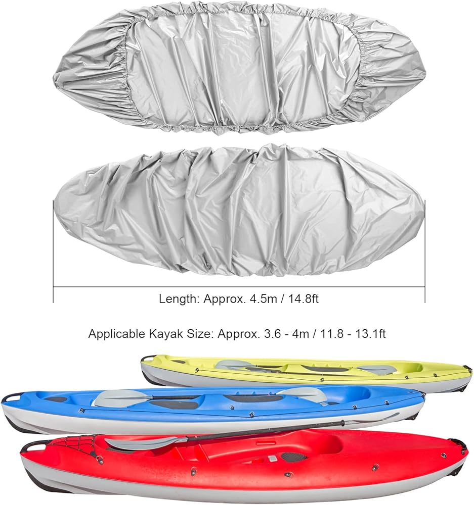 غطاء كاياك، 4.5 متر/ 11.8-13.1 قدم مقاوم للماء لتخزين الزورق وغطاء واقي من الشمس مع حماية من الشمس فوق البنفسجية لقارب صيد قوارب الكاياك ولوح مجداف (رمادي)