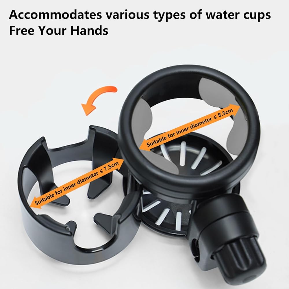 This 2 in 1 cup holder for boat provides you an extra cupholders,by rotating the support shaft, one cup slot is changed into two, increase the possibility of use, meet more storage needs, easy to adjust, do not take up space, It holds all bottle and cups max diameter 8.5cm / 3.3in.