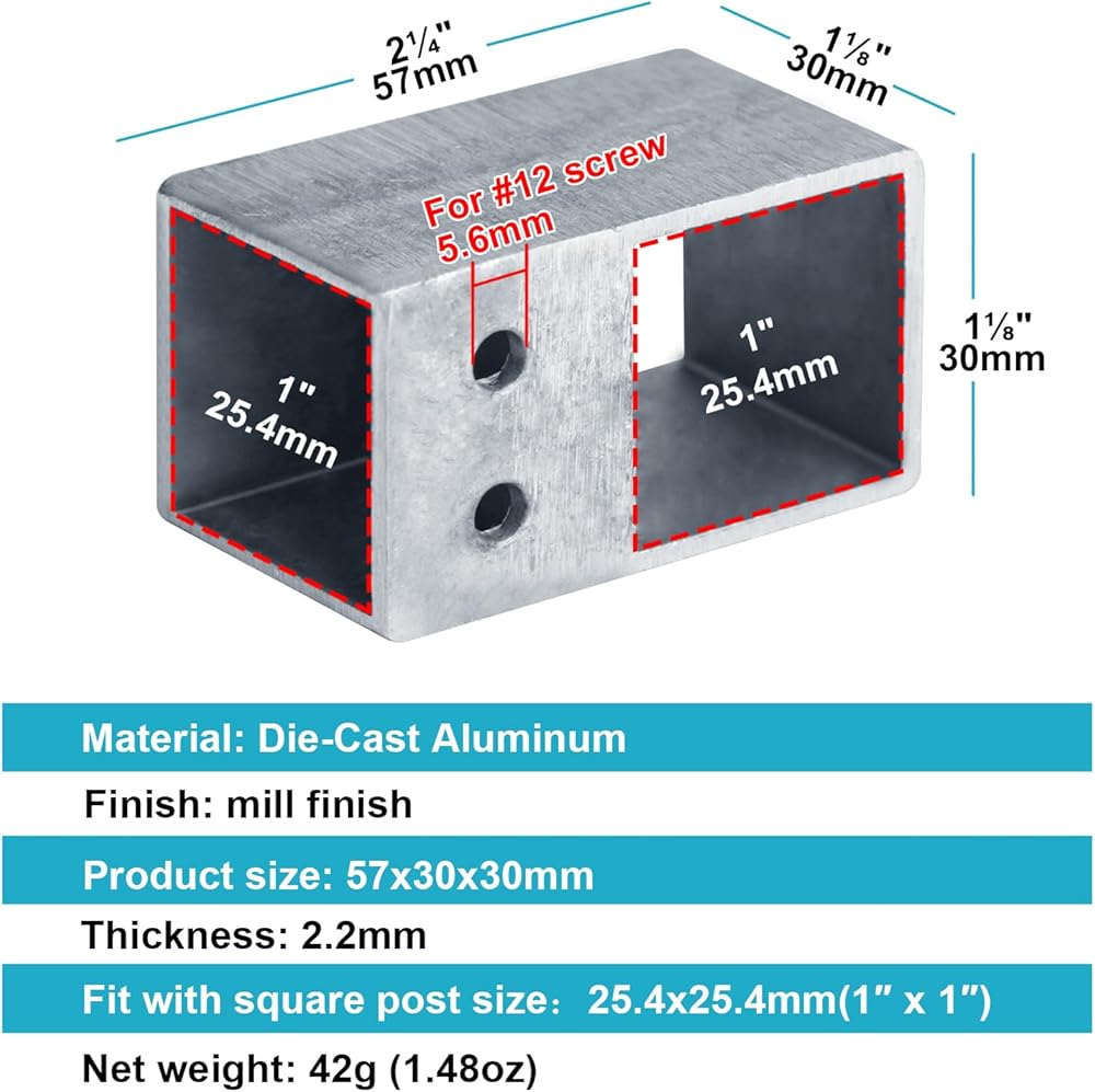- تناسب أنبوب مربع مقاس 1 × 1 بوصة (25.4 × 25.4 مم).